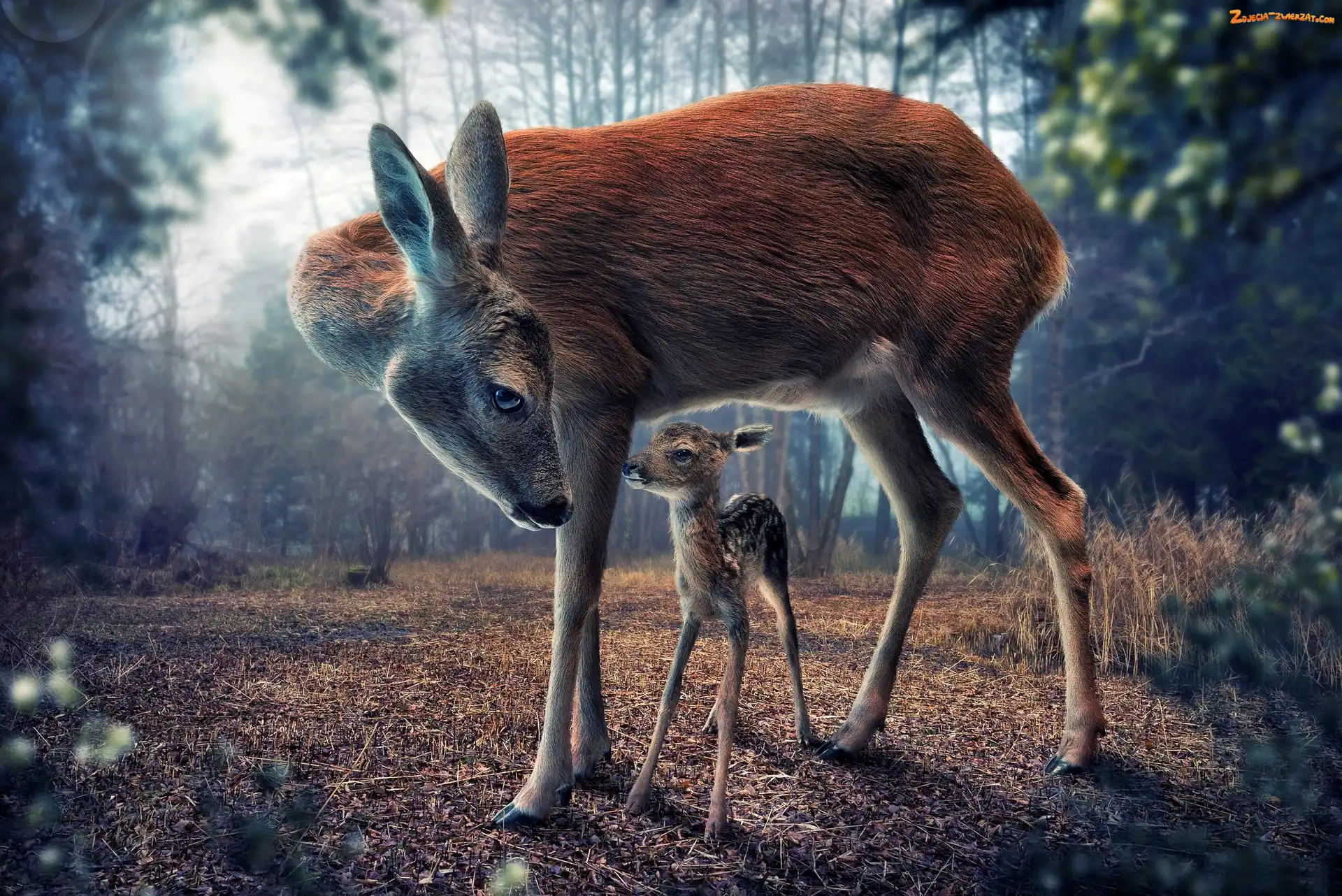 Zdjęcie: Mgła, Poranek, Młode, Sarna, Las