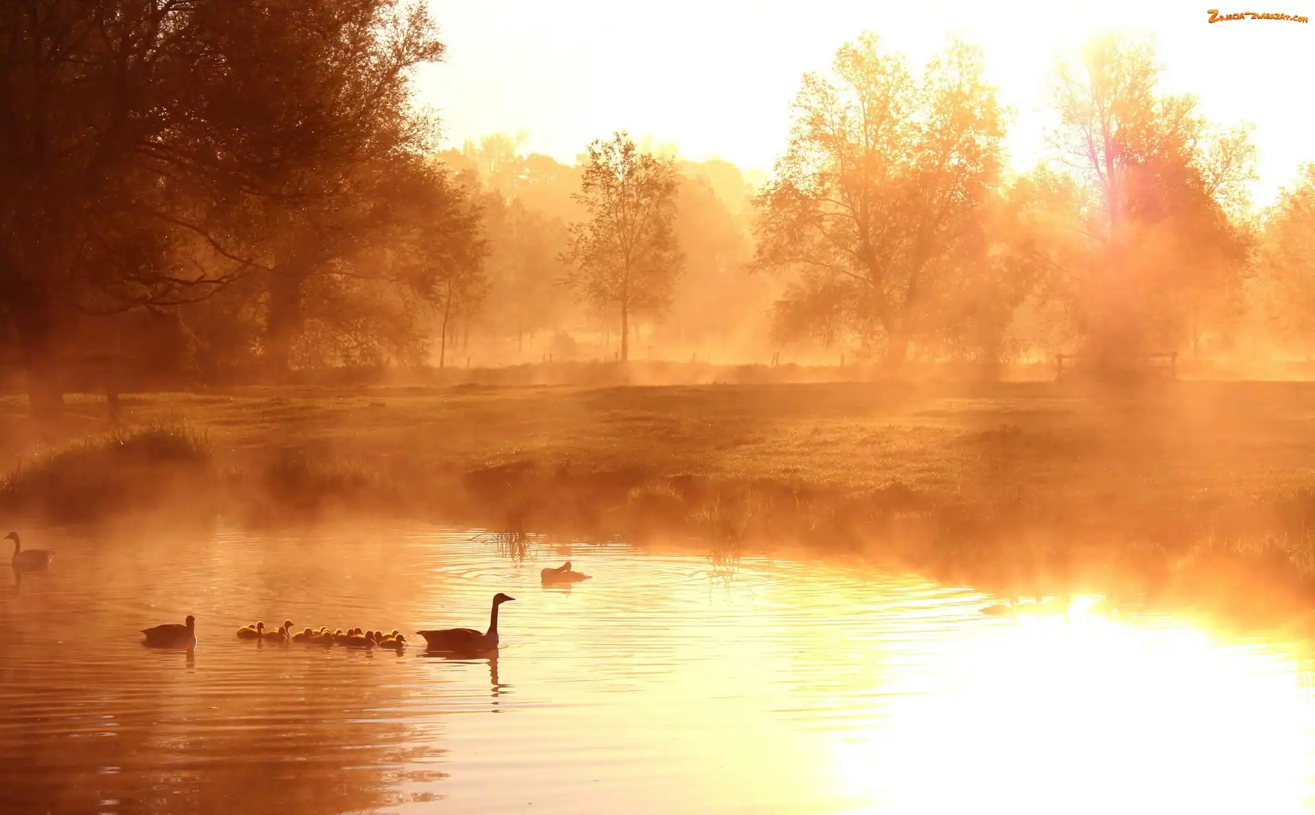 Mgła, Gęsi, Świt, Jezioro