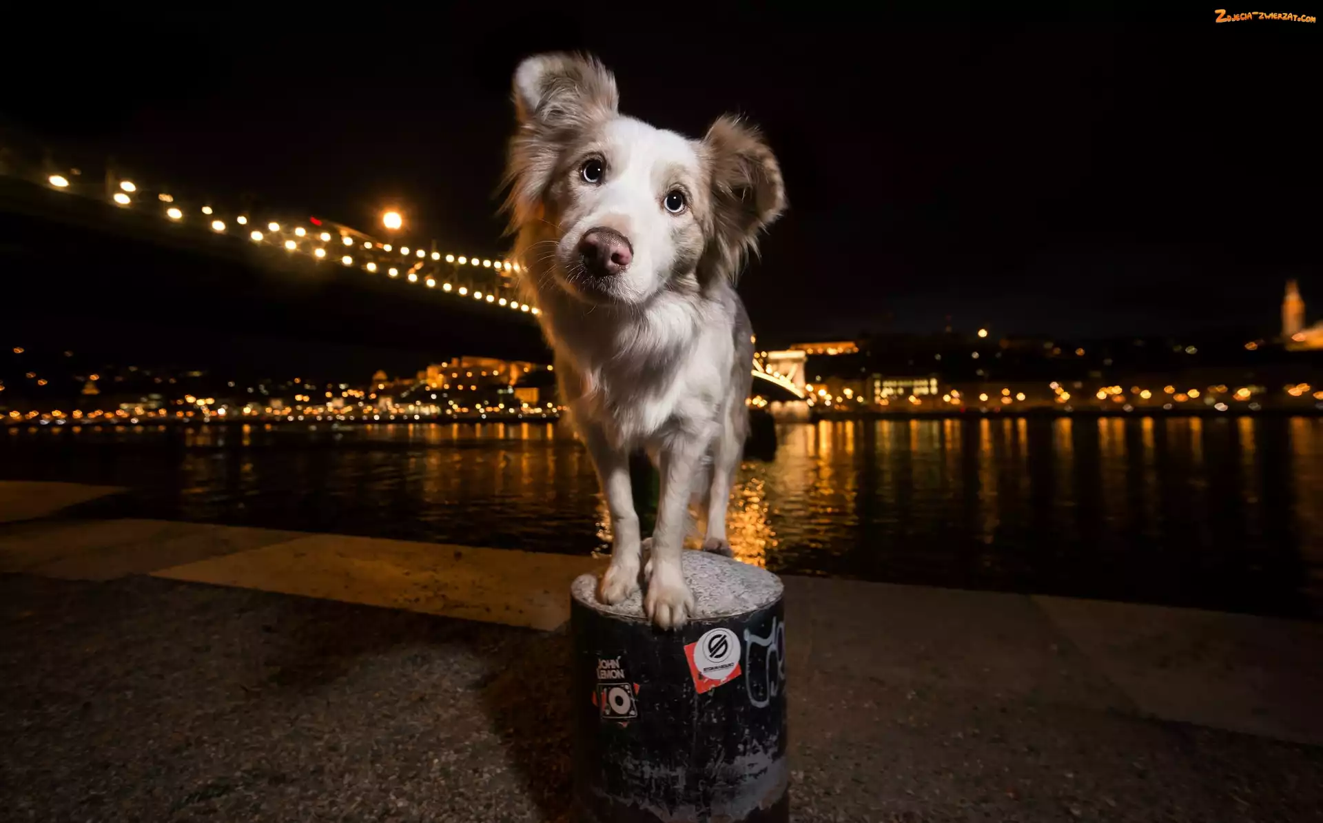 Zdjęcie: Miasto, Noc, Pies, Światła