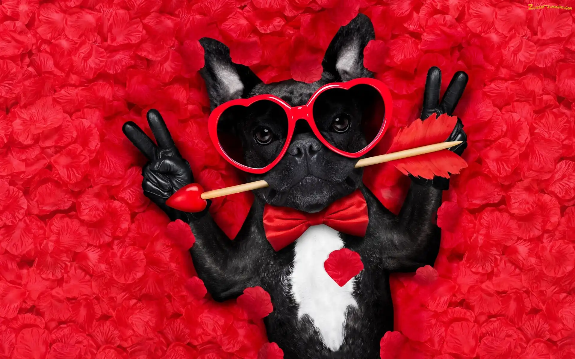 Zdjęcie: Śmieszne, Pies, Płatki, Strzała, Buldog francuski, Okulary