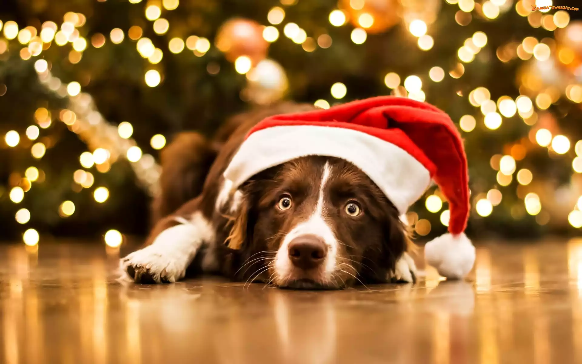 Zdjęcie: Mikołaja, Czapka, Pies, Leżący, Border collie