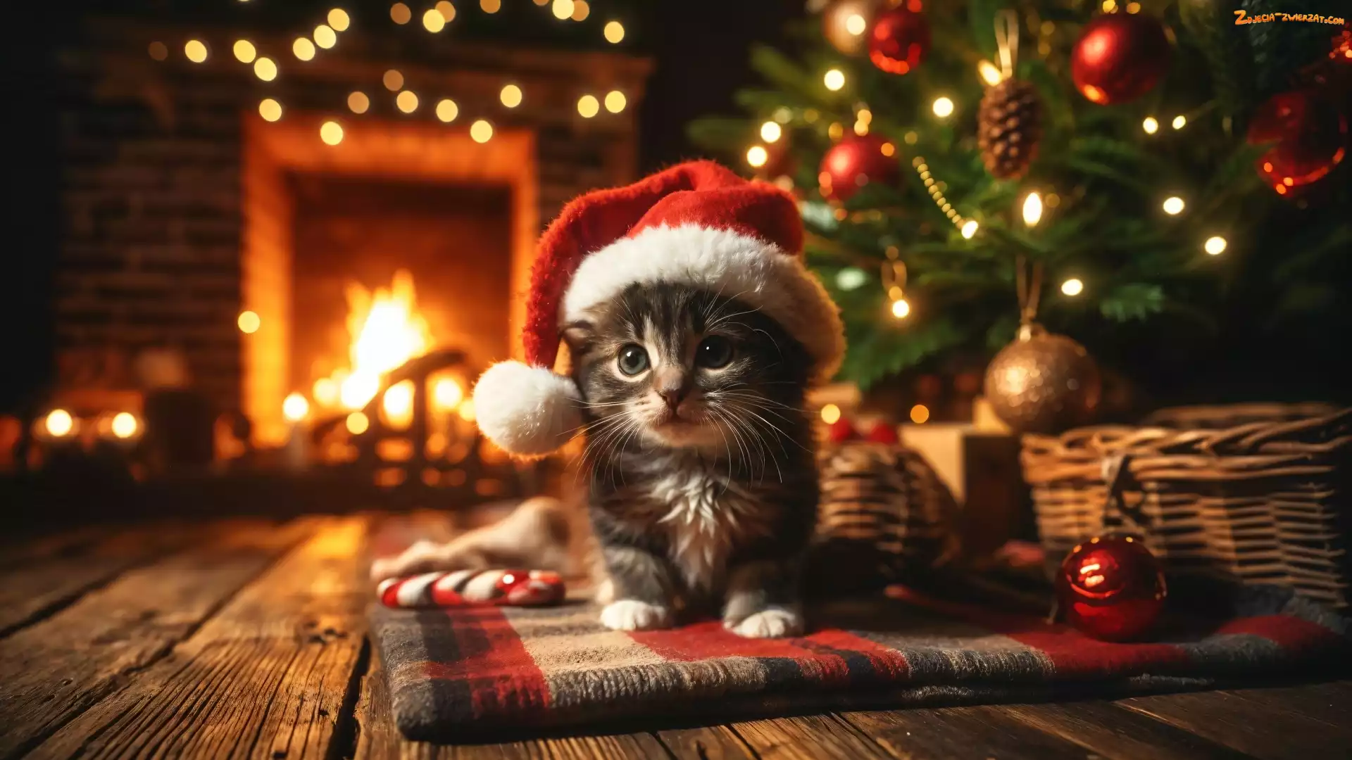 Zdjęcie: Koc, Mały, Kot, Mikołaja, Ozdoby, Czapka, Choinka