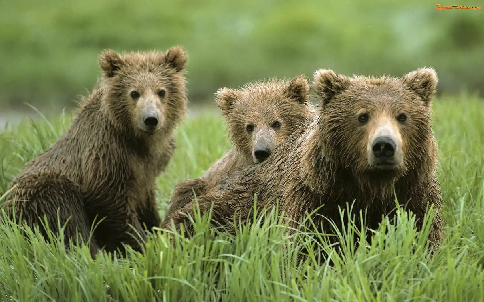 Zdjęcie: Miś, Trawa, Mama, Młode