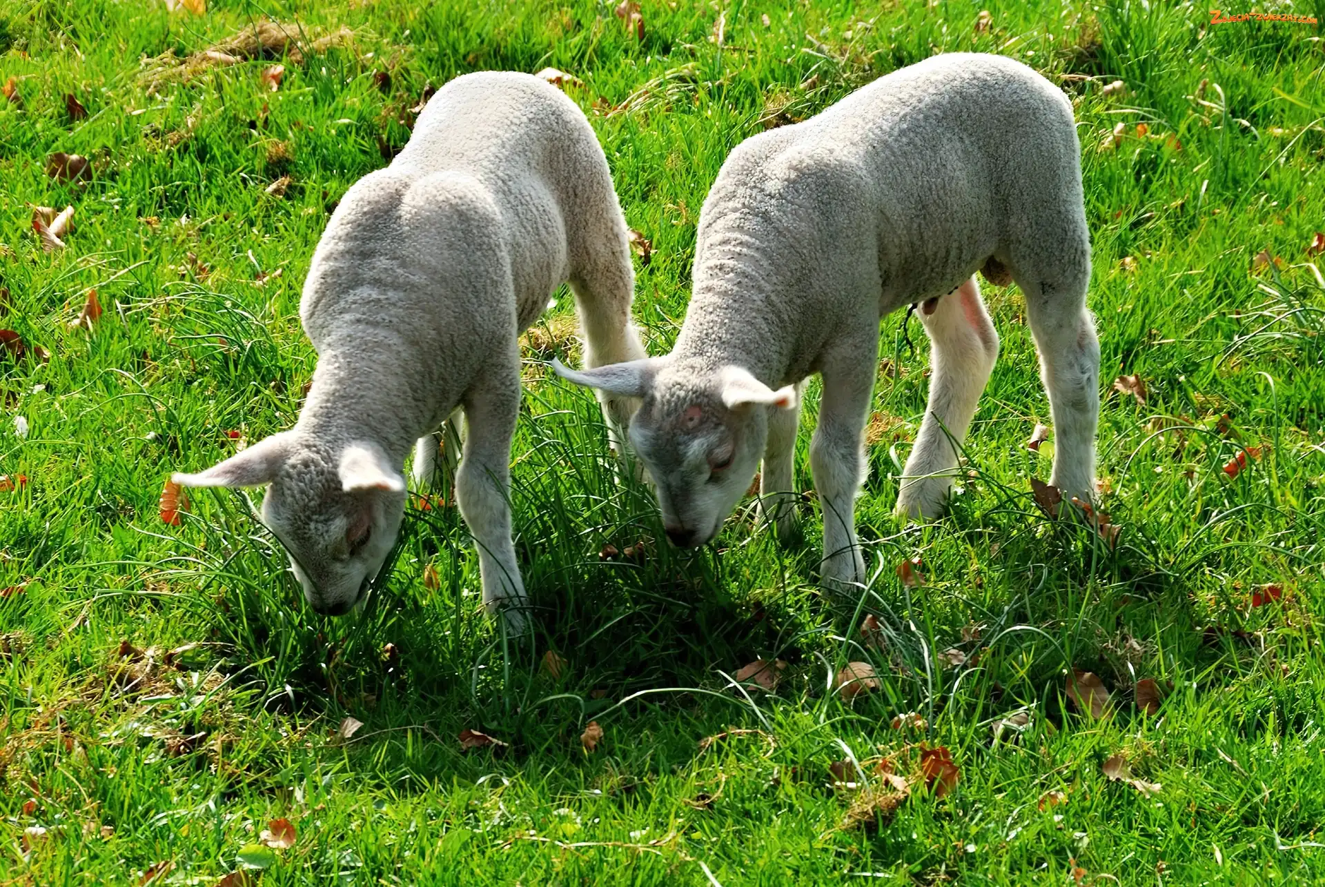 Zdjęcie: Młode, Trawa, Dwa, Baranki