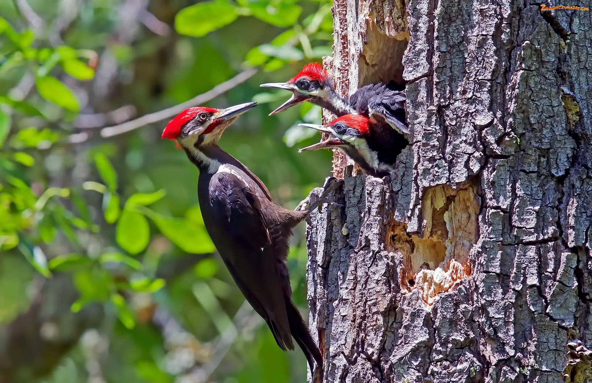 Młode, Dziupla, Pisklęta, Dzięcioł, Drzewo