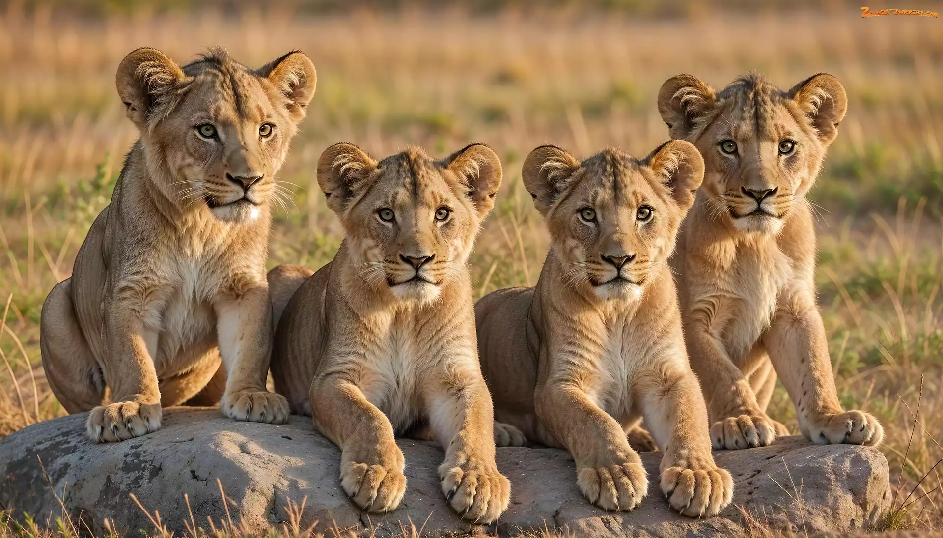 Zdjęcie: AI, Cztery, Lwy, Młode, Lwiątka, Kamień