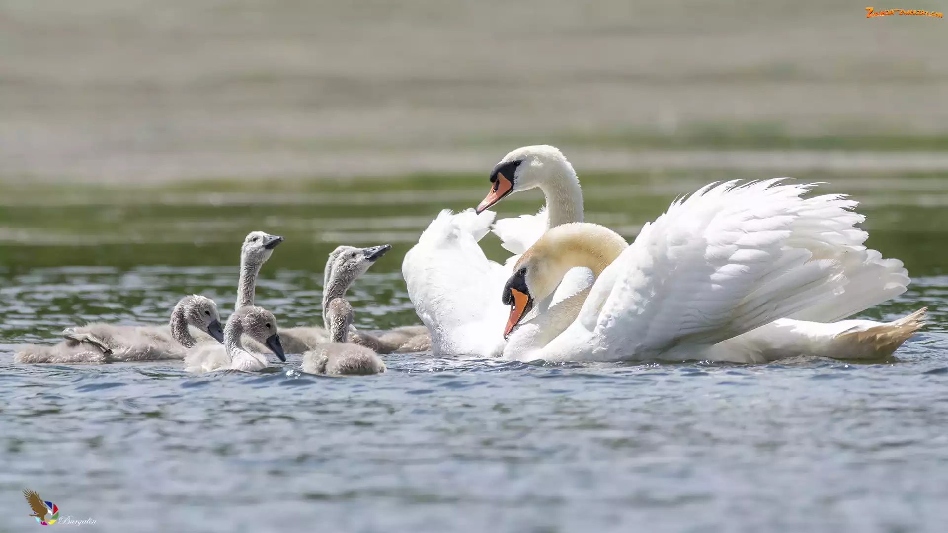 Młode, Rodzina, Białe, Ptaki, Łabędzie