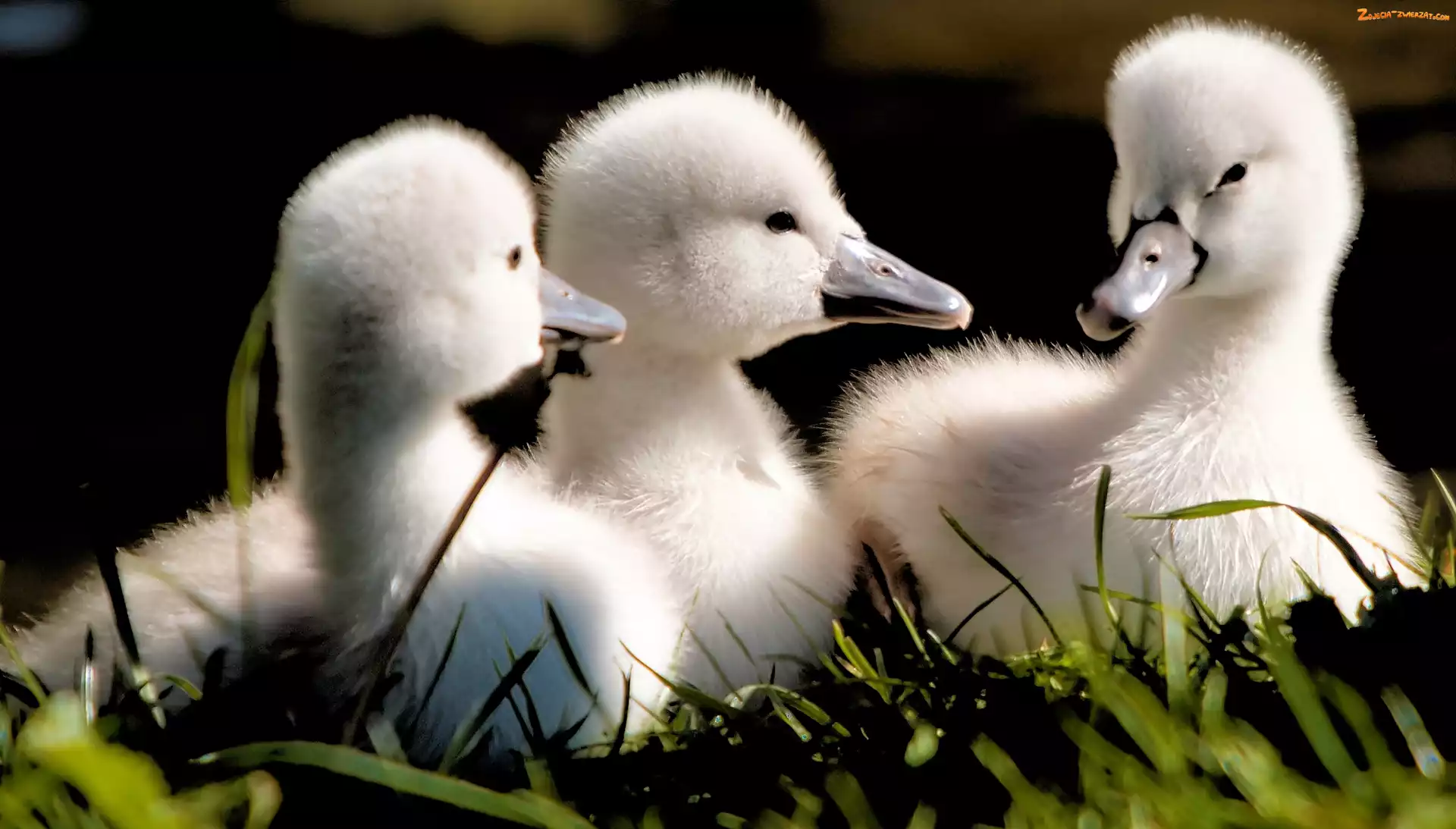 Zdjęcie: Młode, Trawa, Trzy, Łabędzie