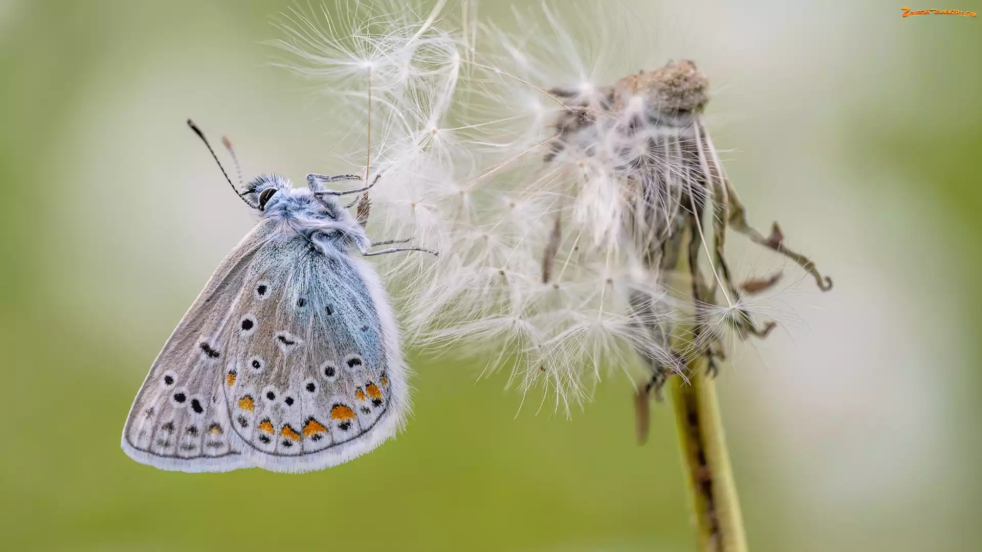 Zdjęcie: Motyl, Modraszek ikar, Zbliżenie, Dmuchawiec