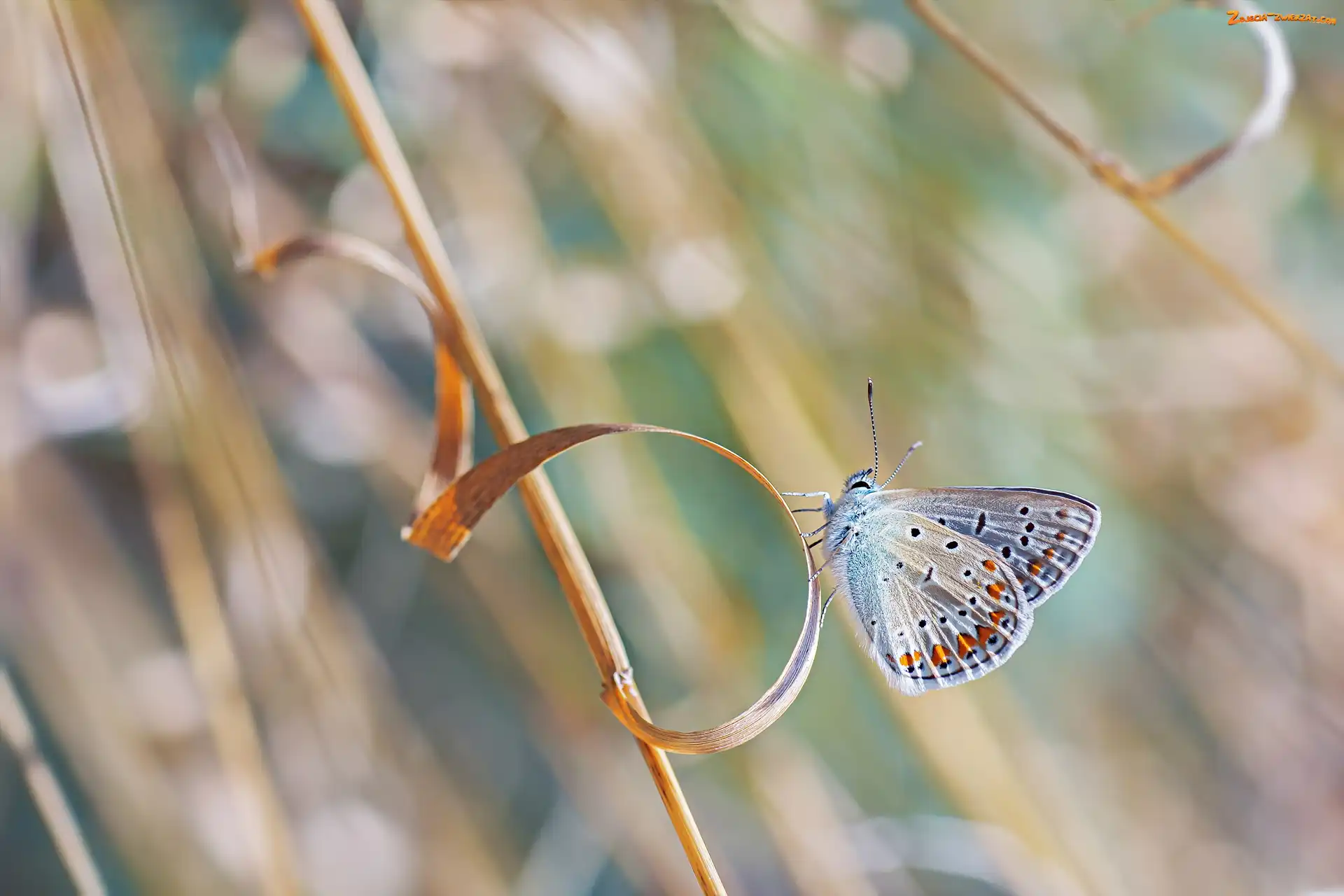 Modraszek ikar, Źdźbło, Motyl, Trawa