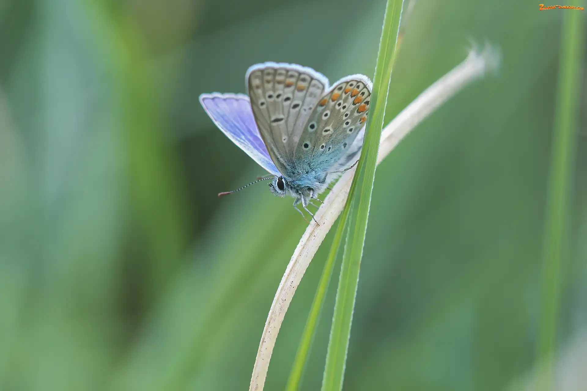 Zdjęcie: Modraszek ikar, Trawa, Motyl, Źdźbła