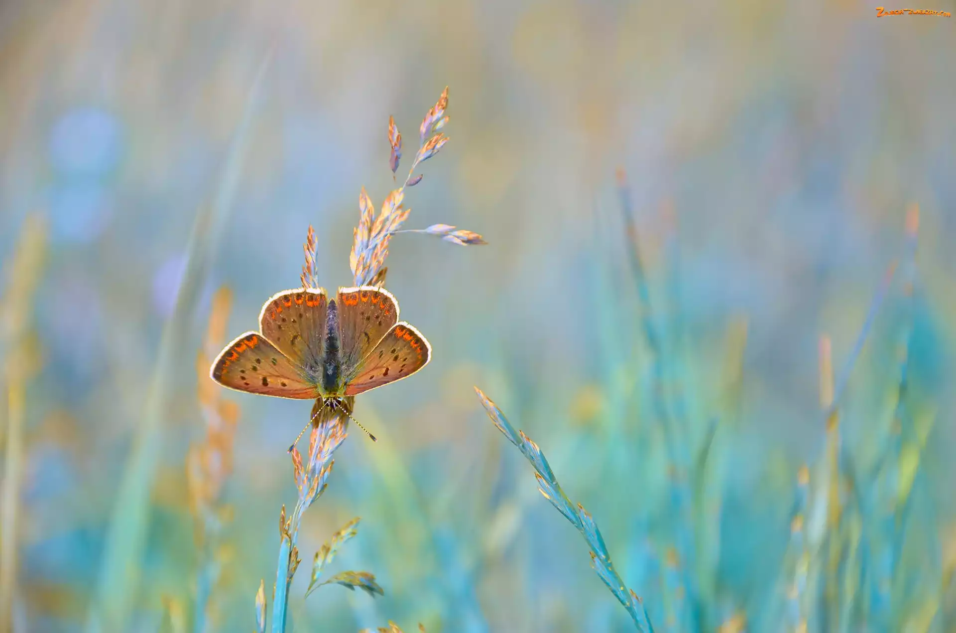 Zdjęcie: Modraszek ikar, Trawy, Motyl, Źdźbła