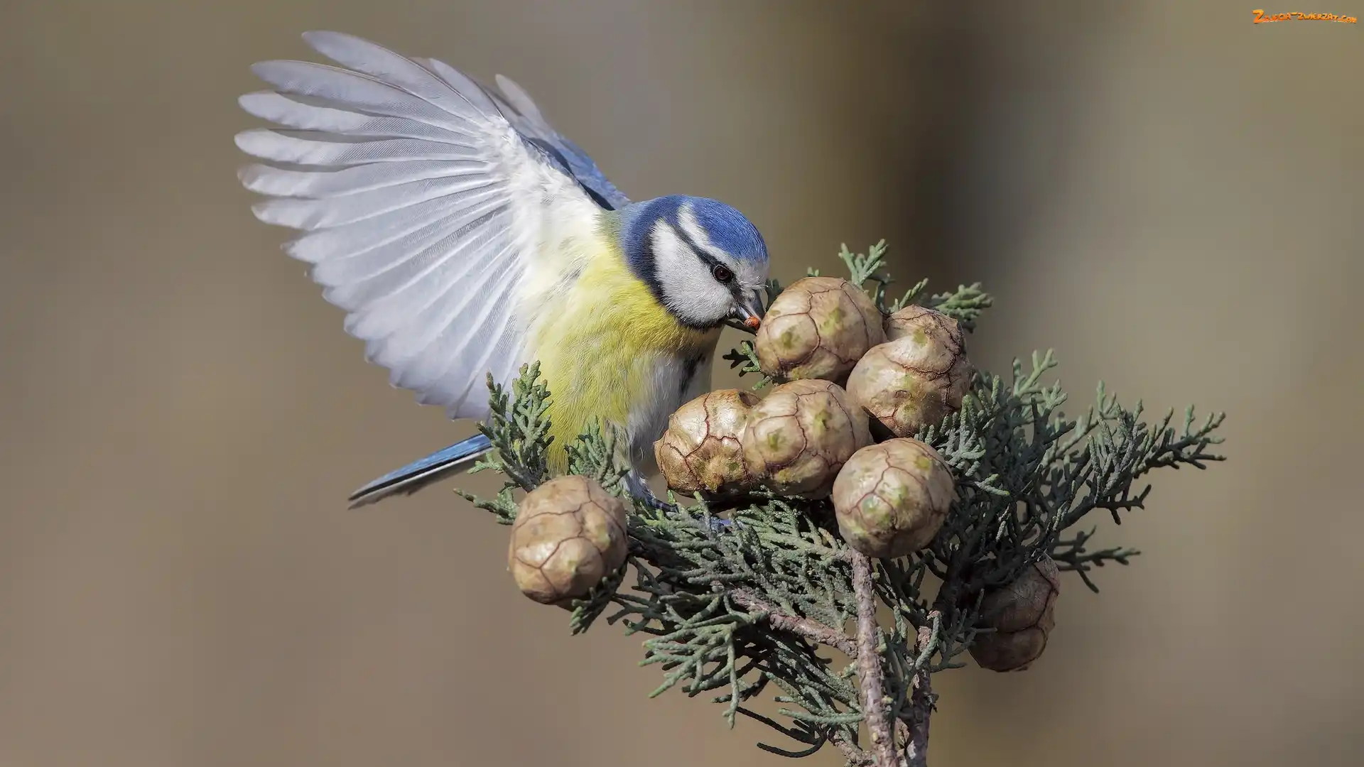 Zdjęcie: Modraszka zwyczajna, Szyszki, Ptak, Sikora modra