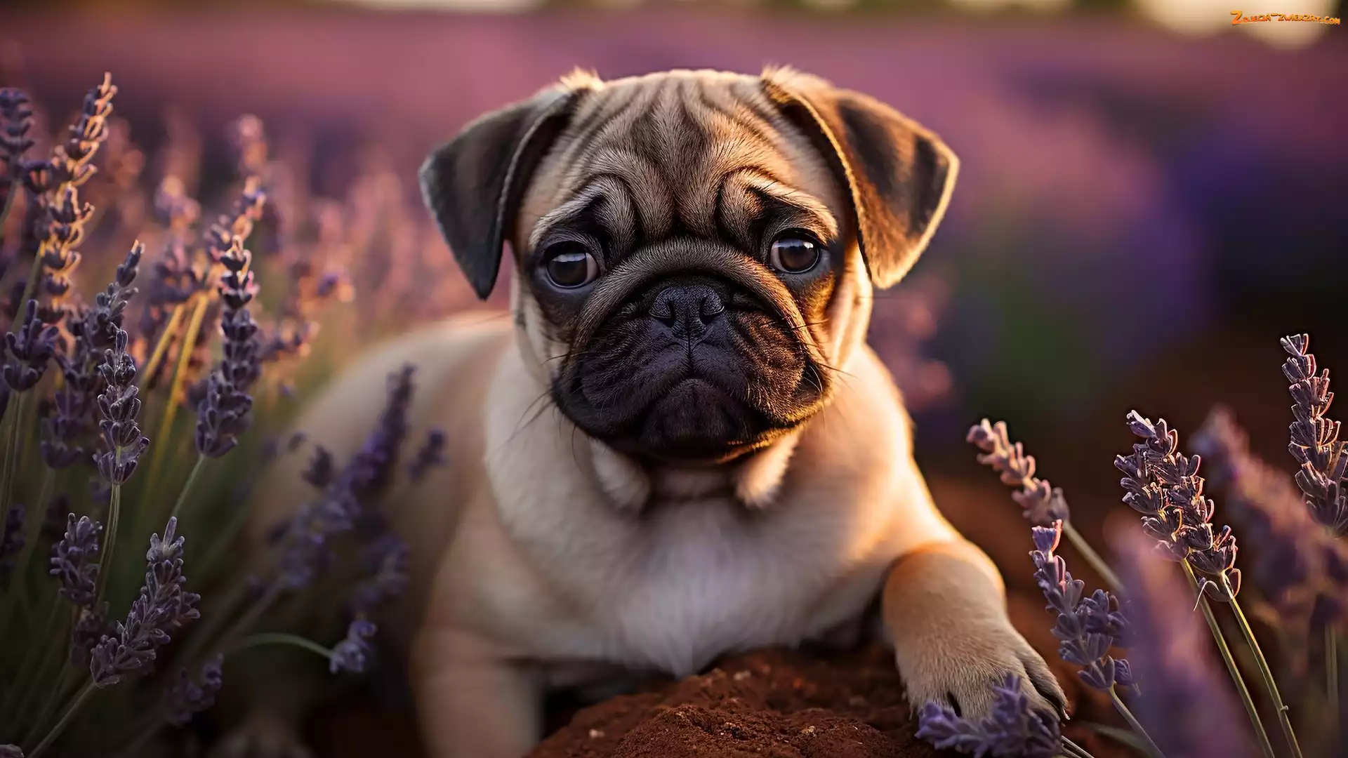 Zdjęcie: Lawenda, Mops, AI, Pies, Szczeniak