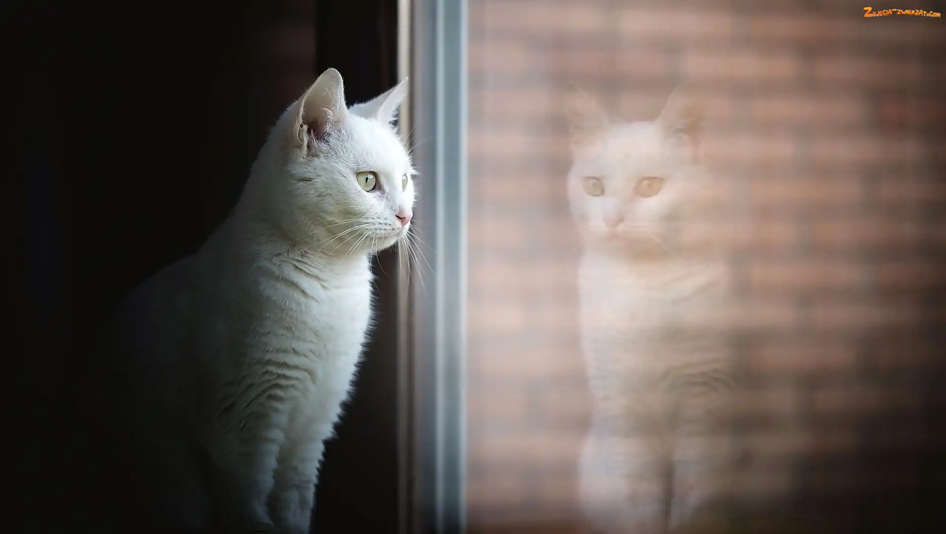 Zdjęcie: Mordka, Kot, Odbicie, Okno, Biały, Spojrzenie