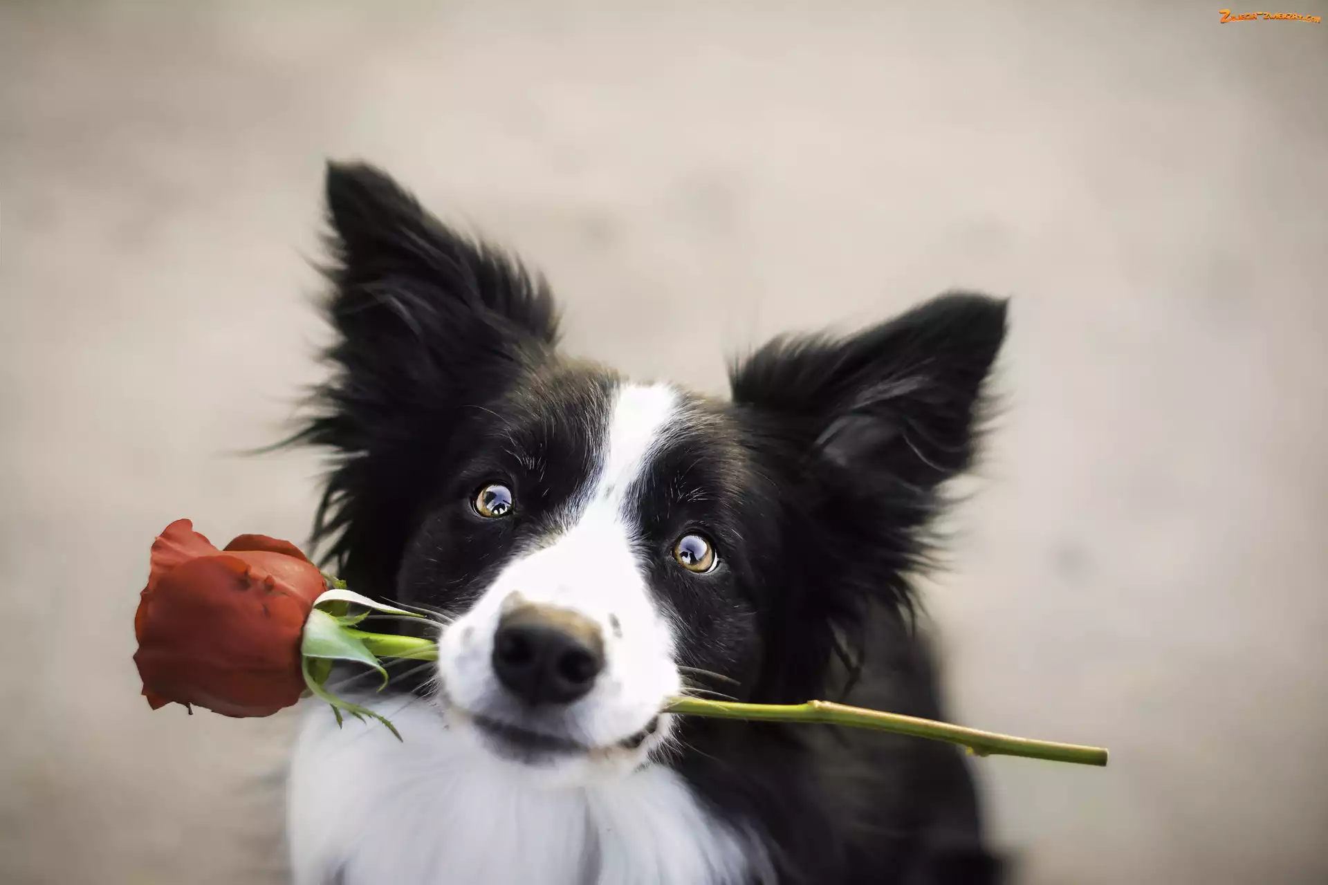 Zdjęcie: Mordka, Prezent, Border collie, Róża