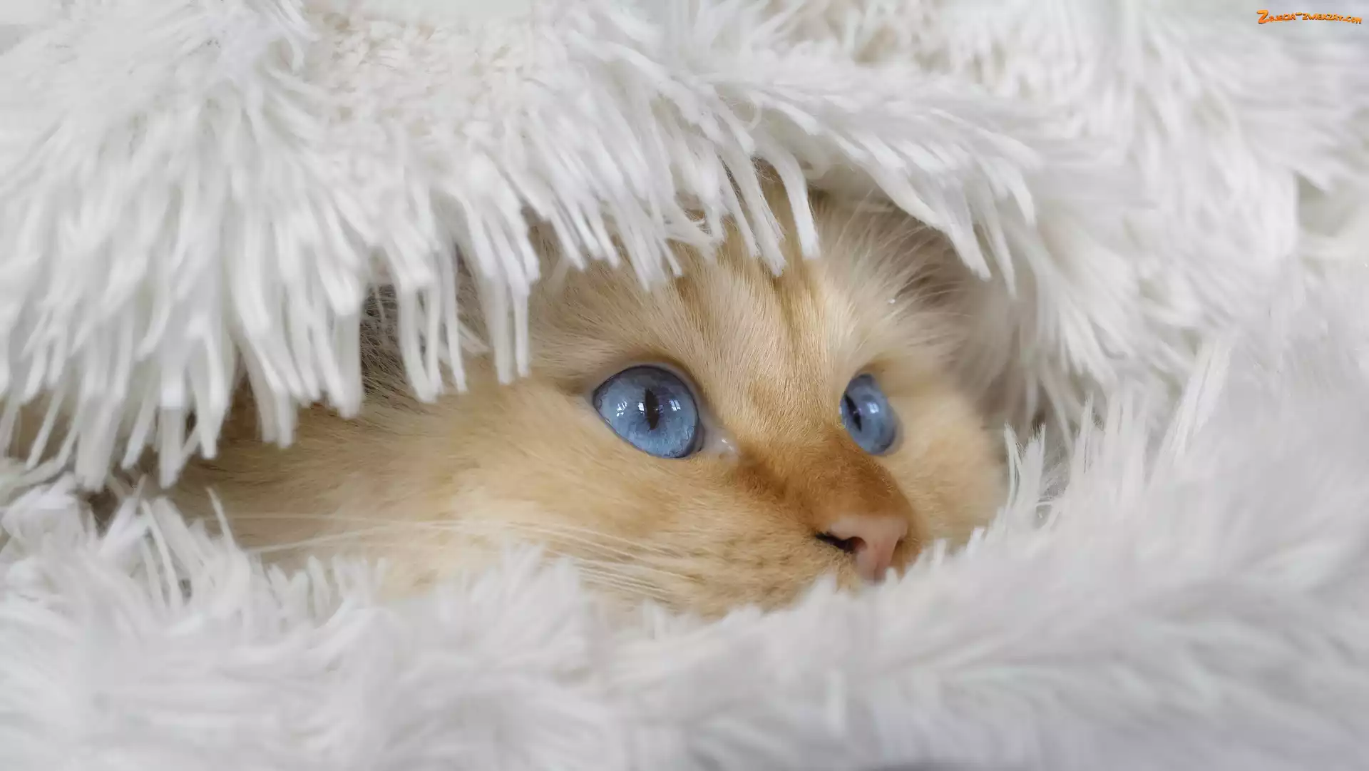 Zdjęcie: Niebieskooki, Kot, Koc, Mordka