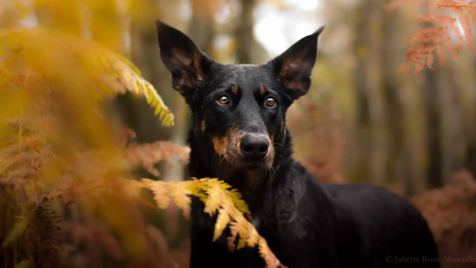 Zdjęcie: Mordka, Paprocie, Pies, Liście