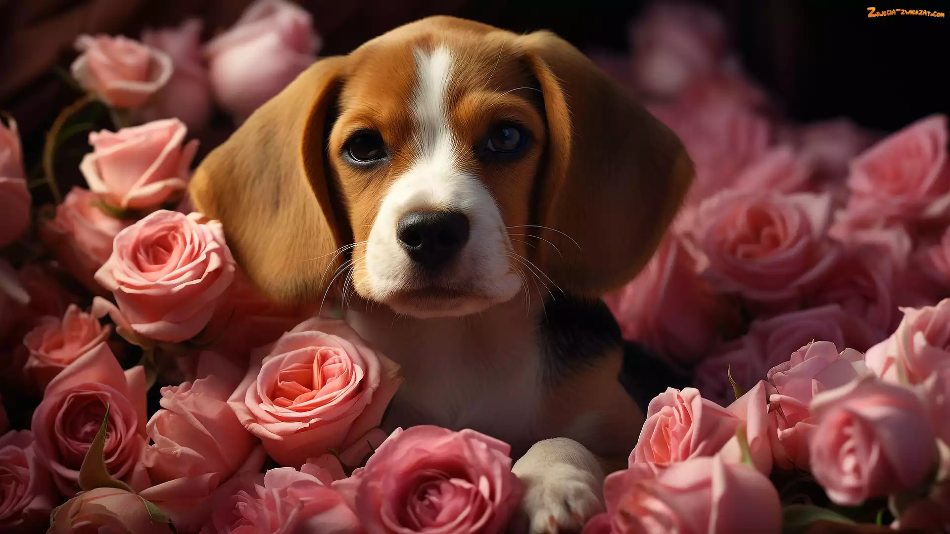 Zdjęcie: Róże, Mordka, Szczeniak, Beagle, Pies