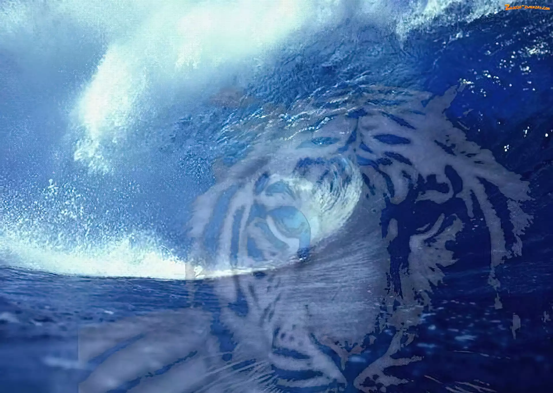 Zdjęcie: Tygrys, Mordka, Morze, Fala