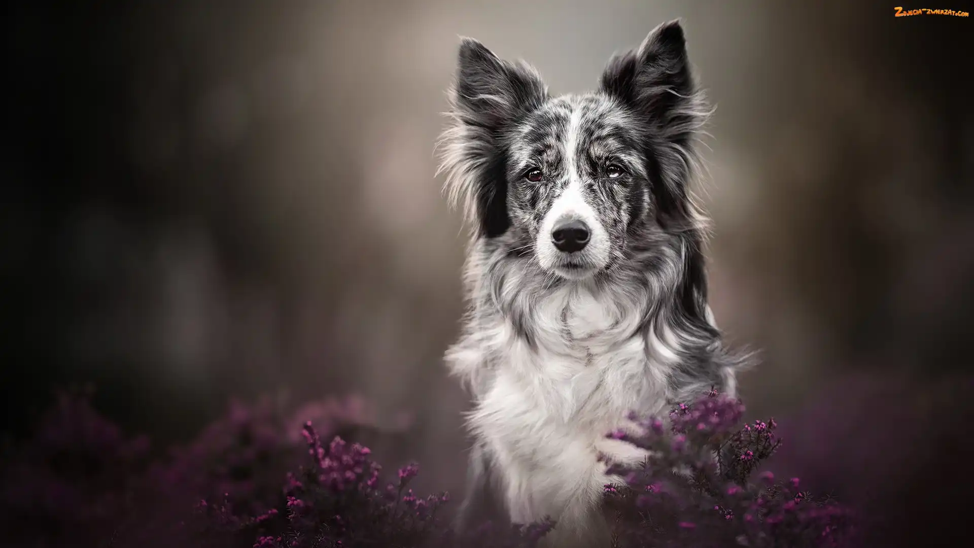 Zdjęcie: Wrzosy, Mordka, Pies, Szaro-biały, Border collie