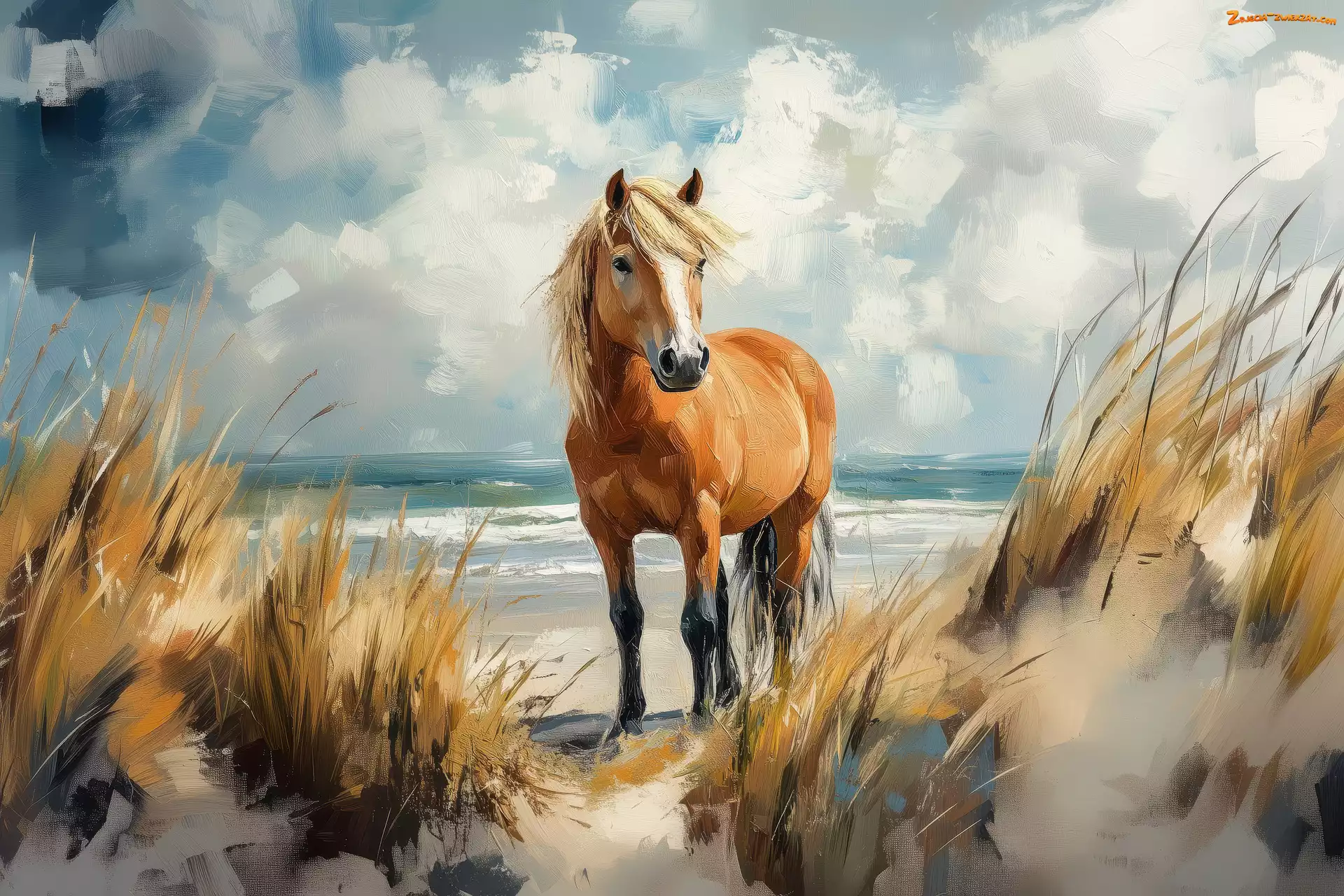 Koń, Wydmy, Malarstwo, Morze