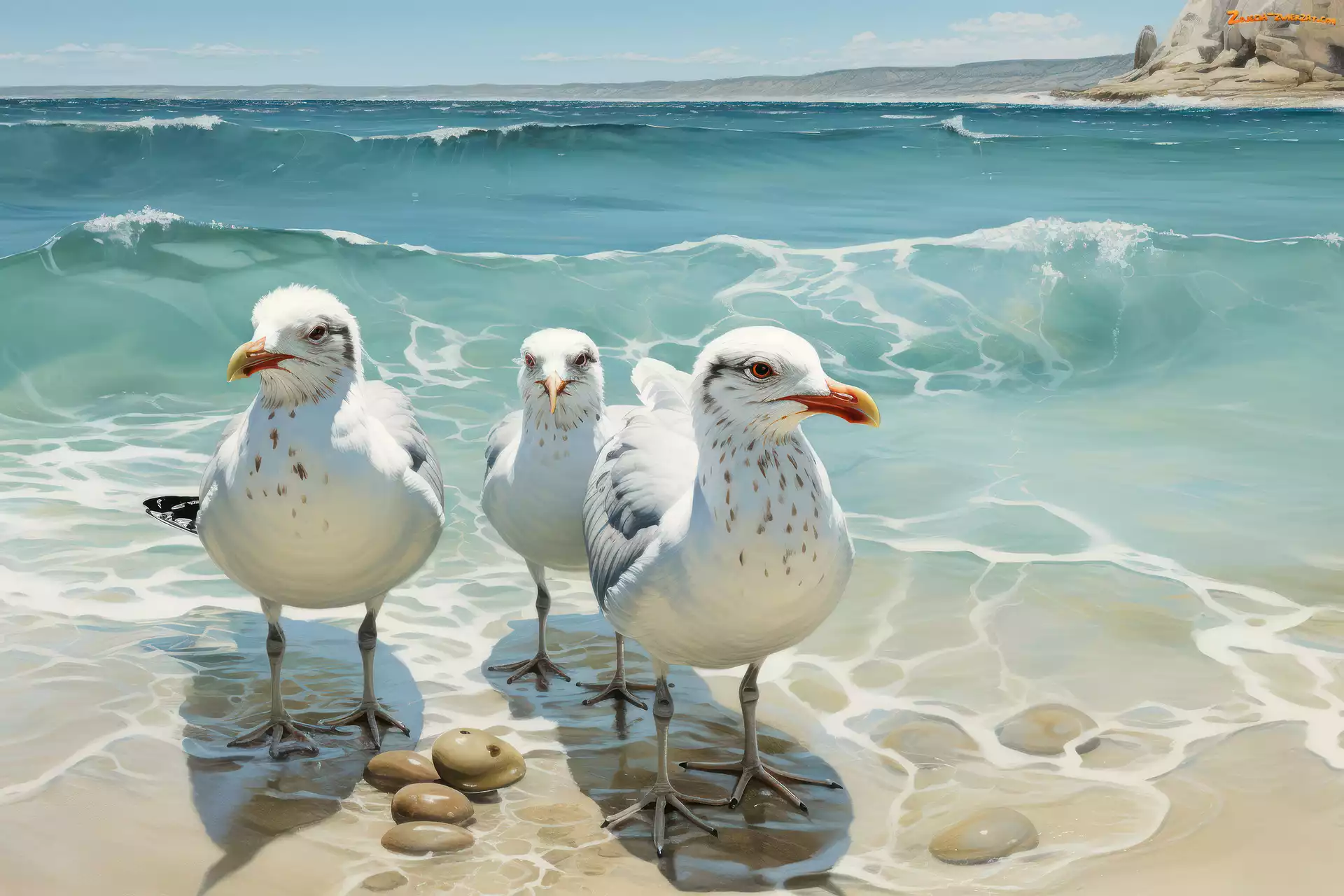Fale, Morze, Piasek, Trzy, Mewy