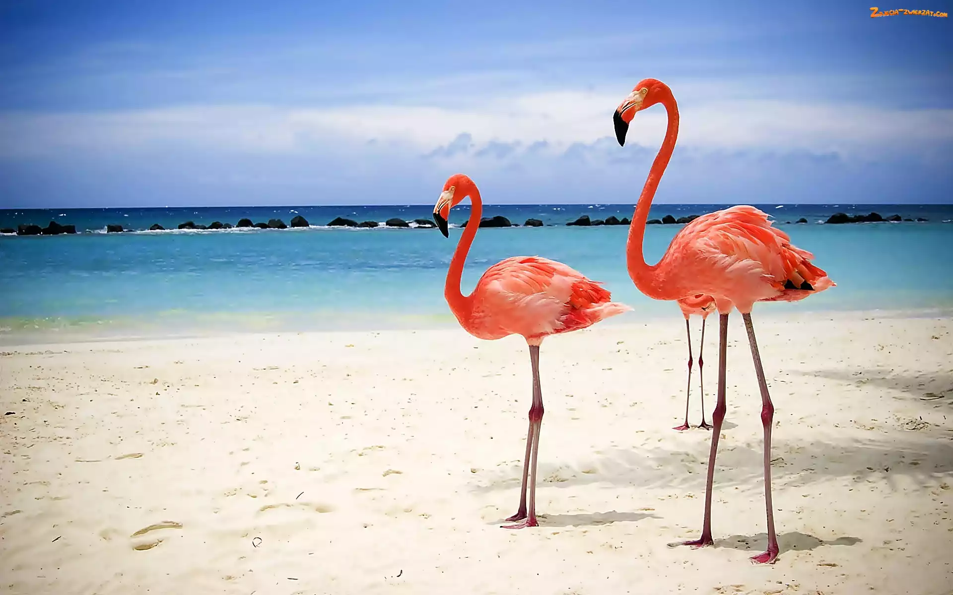 Zdjęcie: Morze, Flamingi, Plaża, Niebo