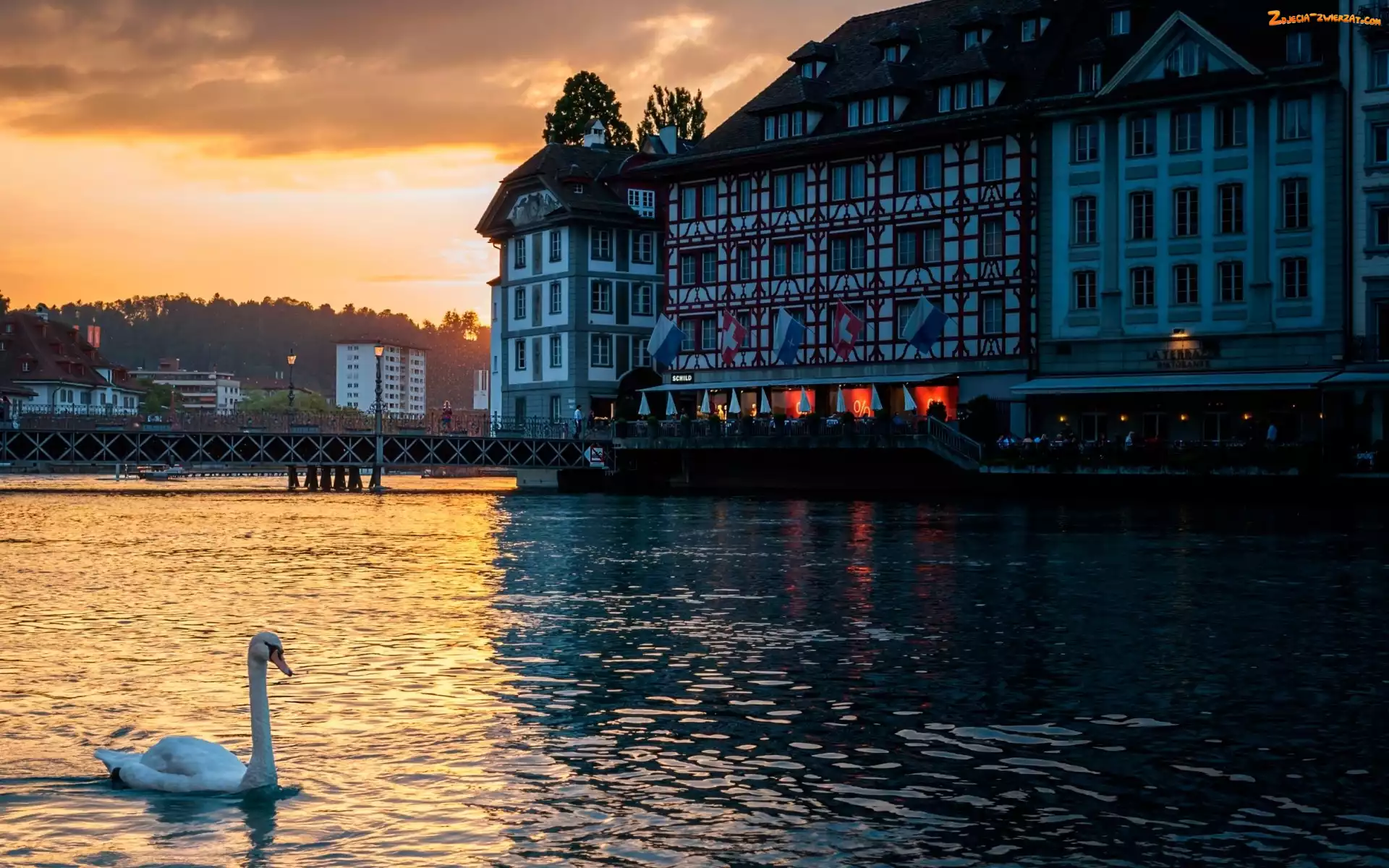 Zdjęcie: Słońca, Most, Rzeka, Miasto, Zachód, Łabędź, Restauracja