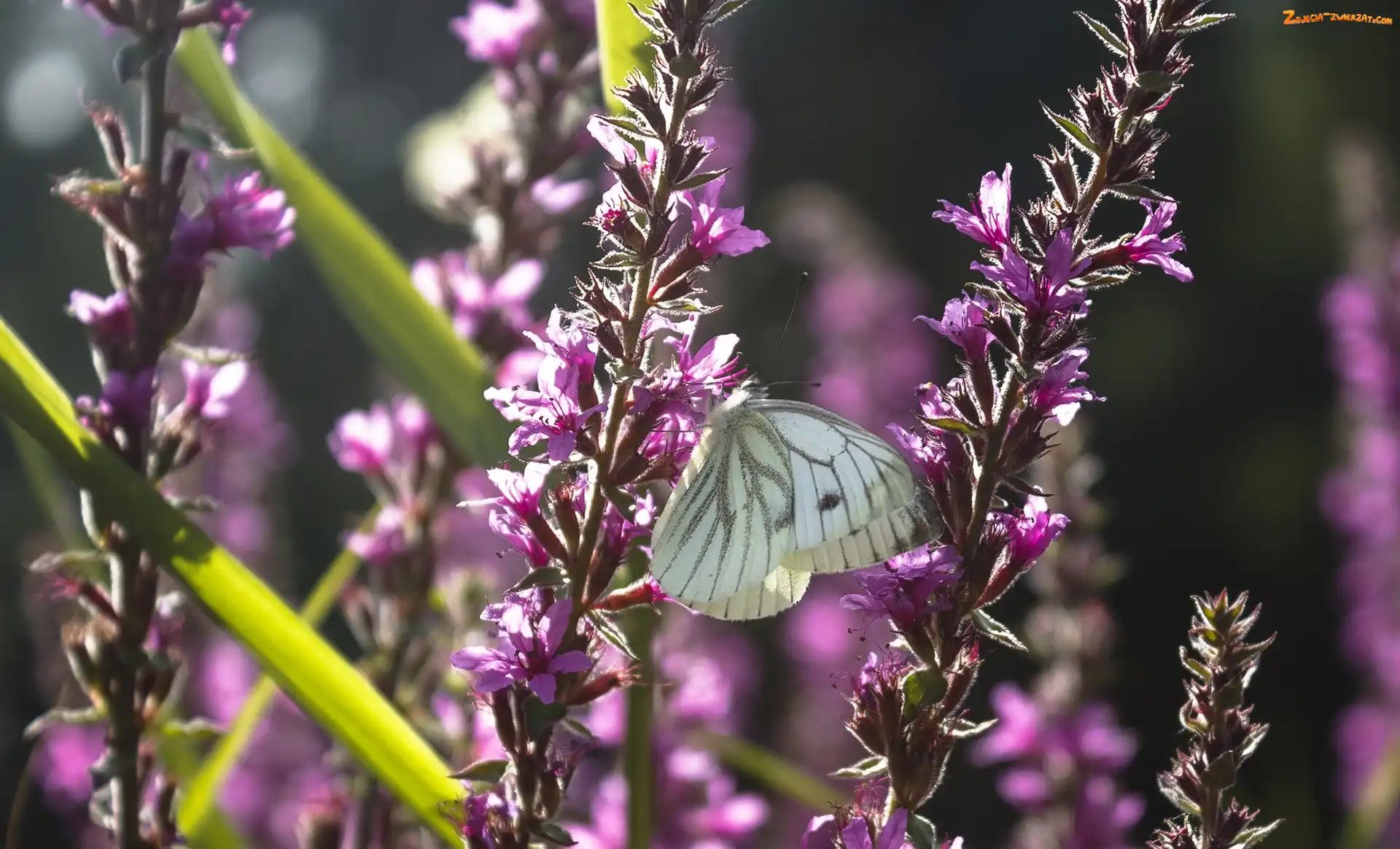 Zdjęcie: Kwiaty, Fioletowe, Motyl, Biały, Bielinek