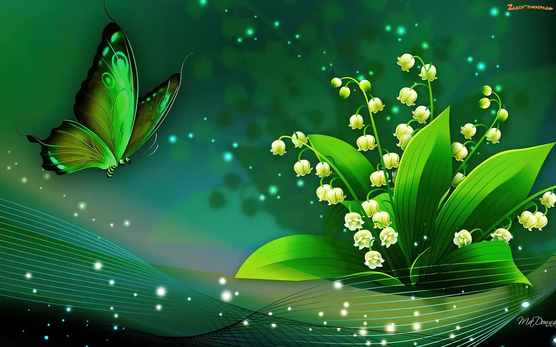 Zdjęcie: Grafika 2D, Motyl, Konwalie, Motylek