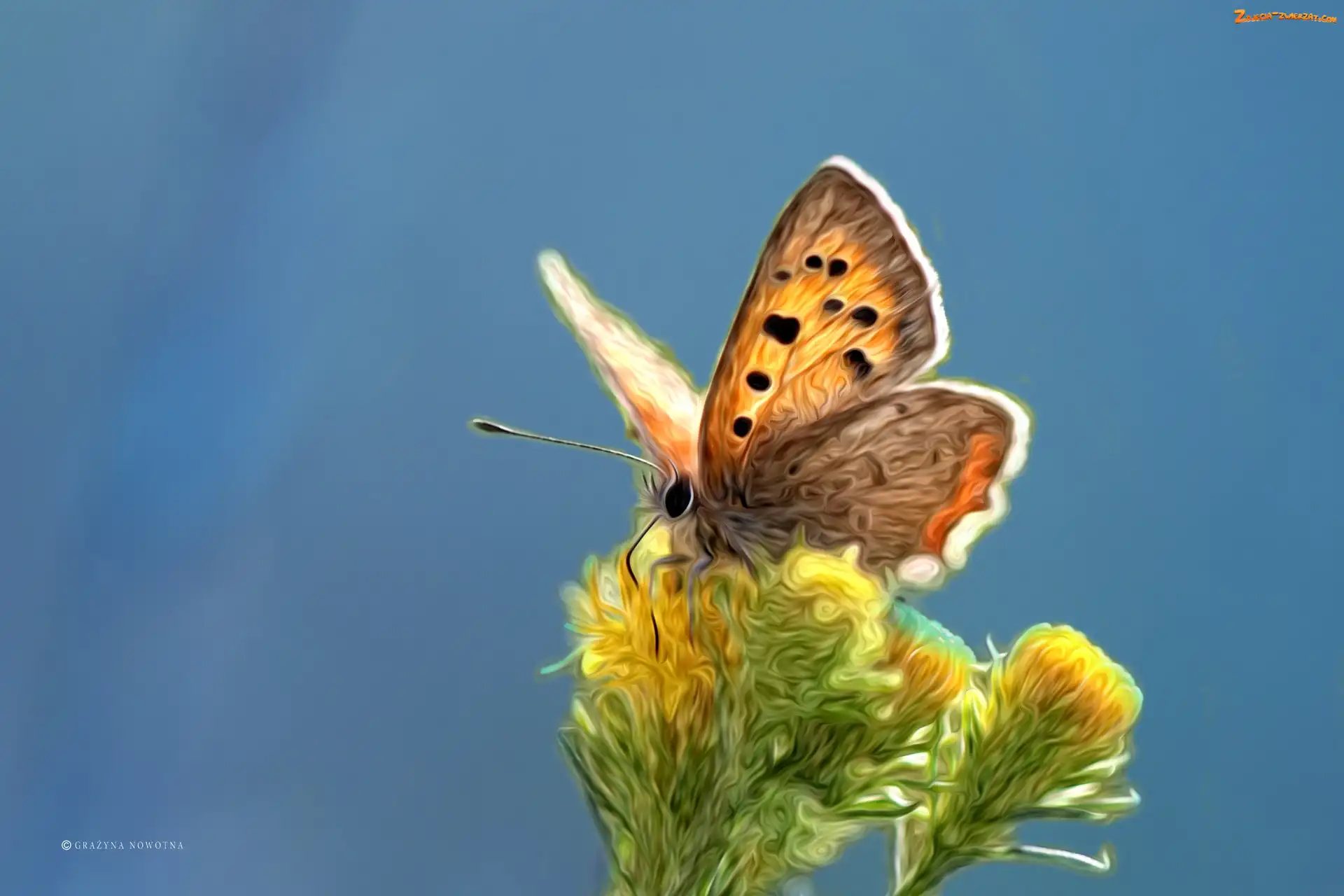 Zdjęcie: Grafika, Motyl, Kwiaty
