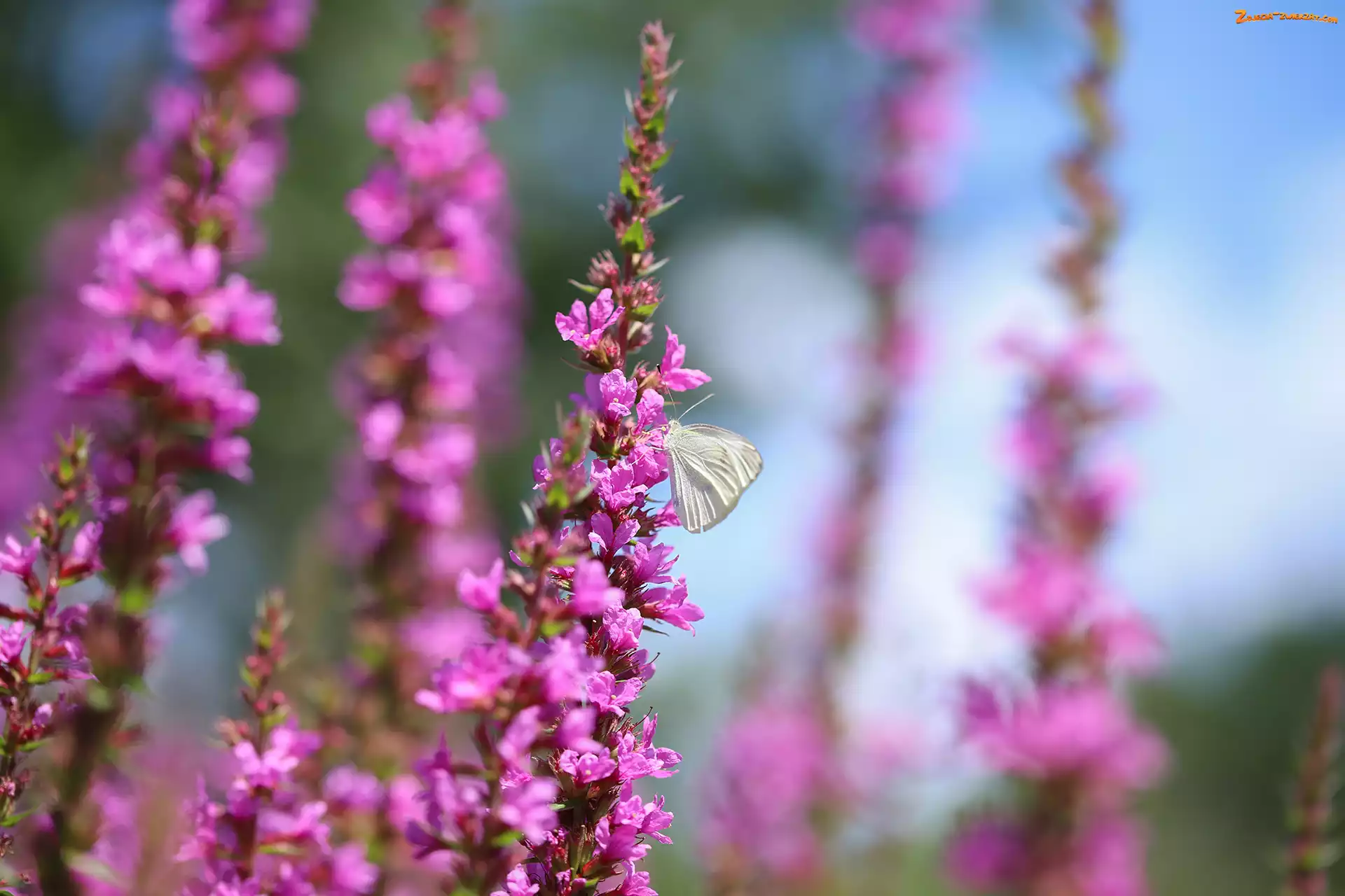 Zdjęcie: Motyl, Kwiaty, Bielinek kapustnik, Różowe