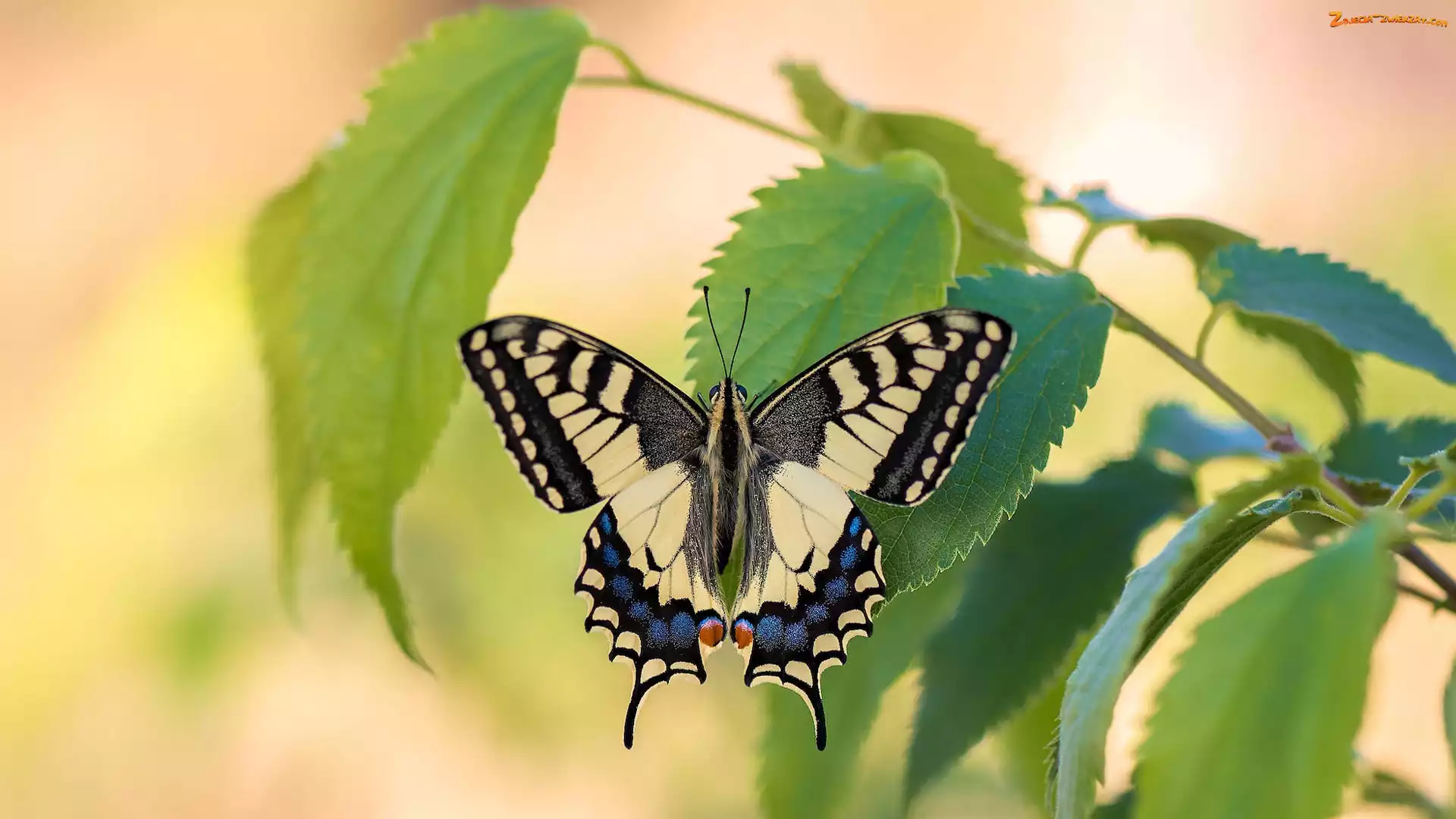 Zdjęcie: Zielone, Listki, Zbliżenie, Motyl, Paź królowej