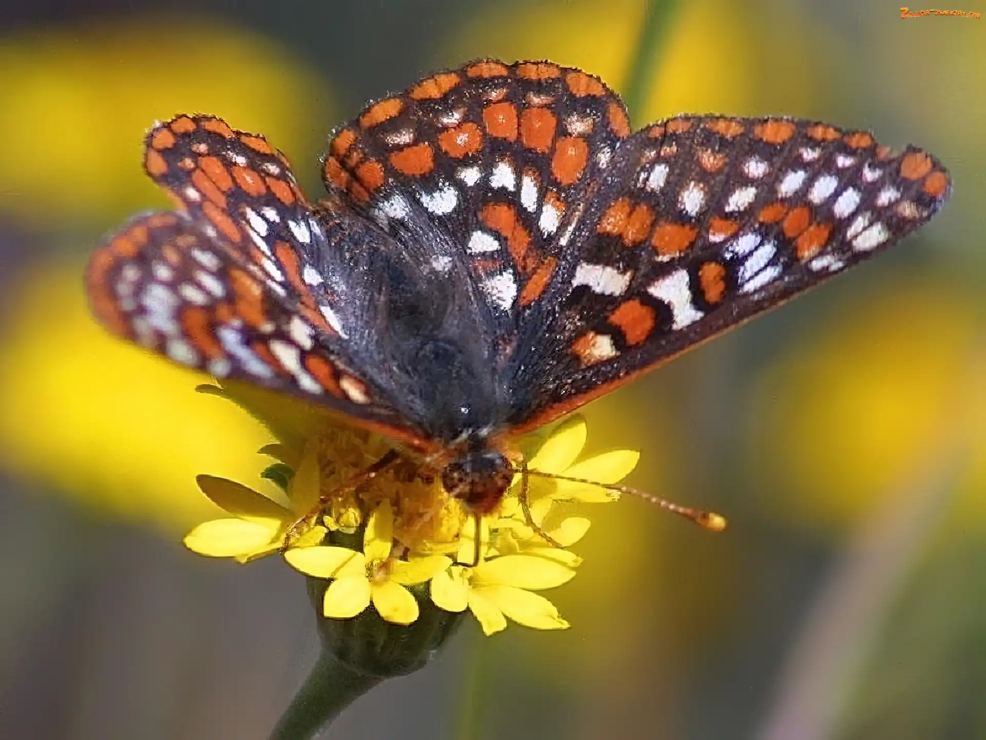 Zdjęcie: Przeplatka maturna, Kwiatki, Motyl, Żółte