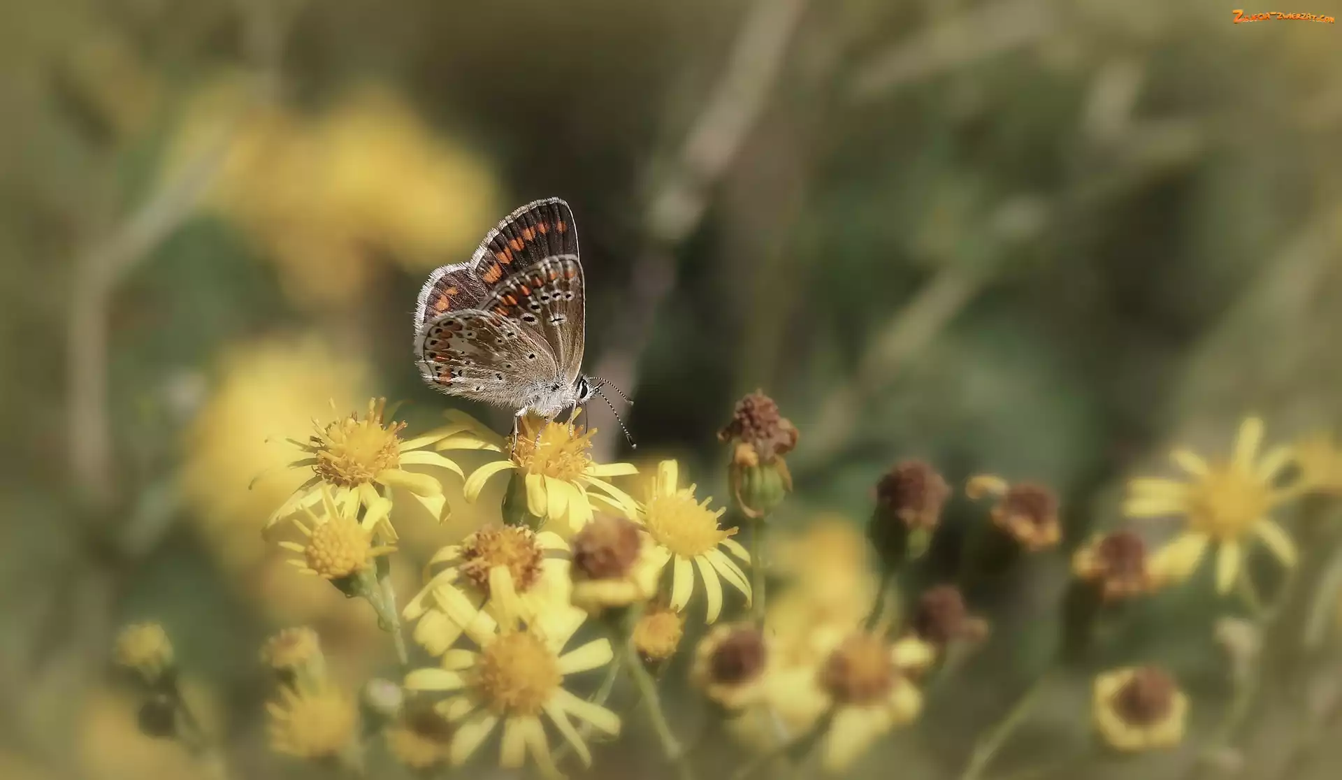 Zdjęcie: Kwiaty, Motyl, Żółte