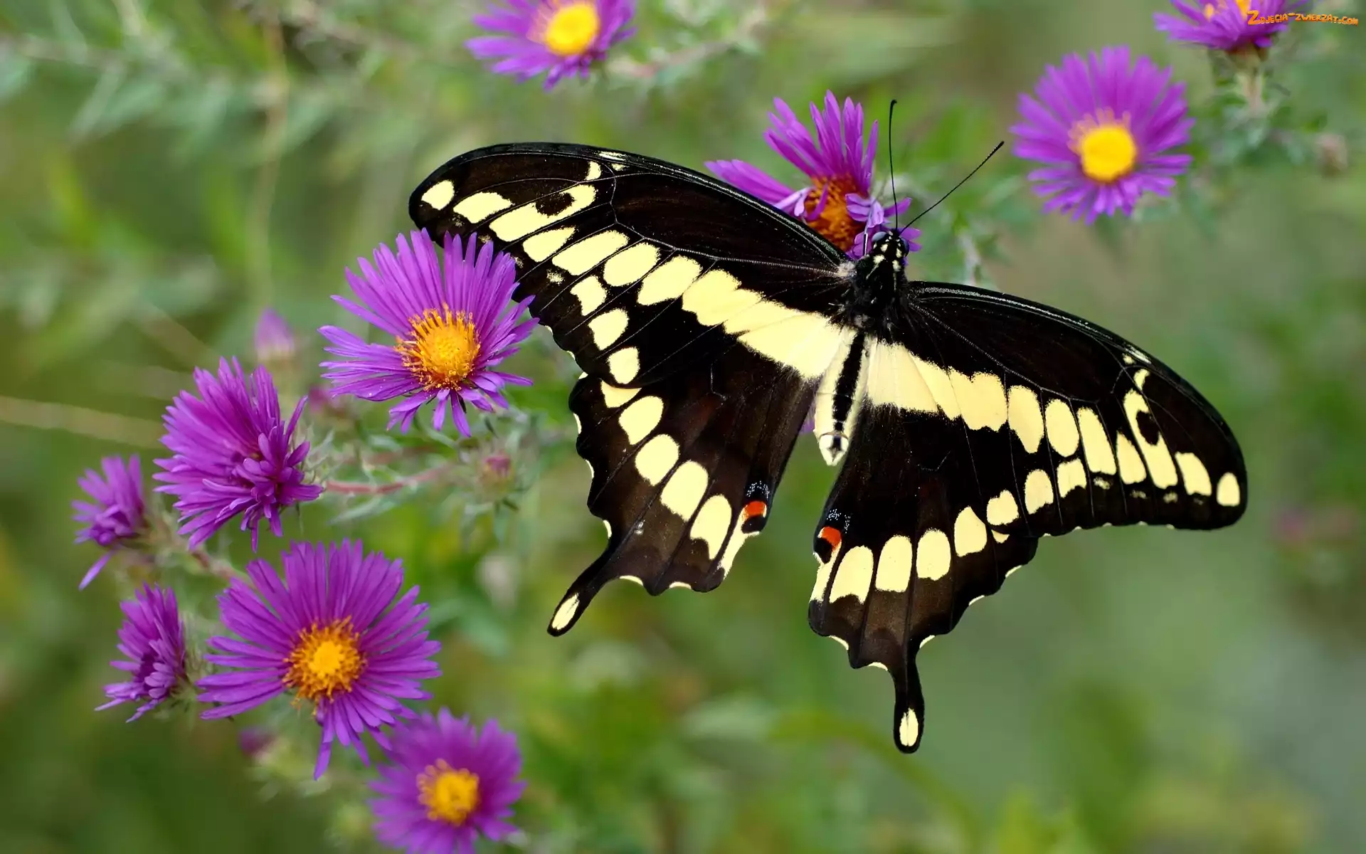 Zdjęcie: Kwiaty, Motyl, Purpurowe