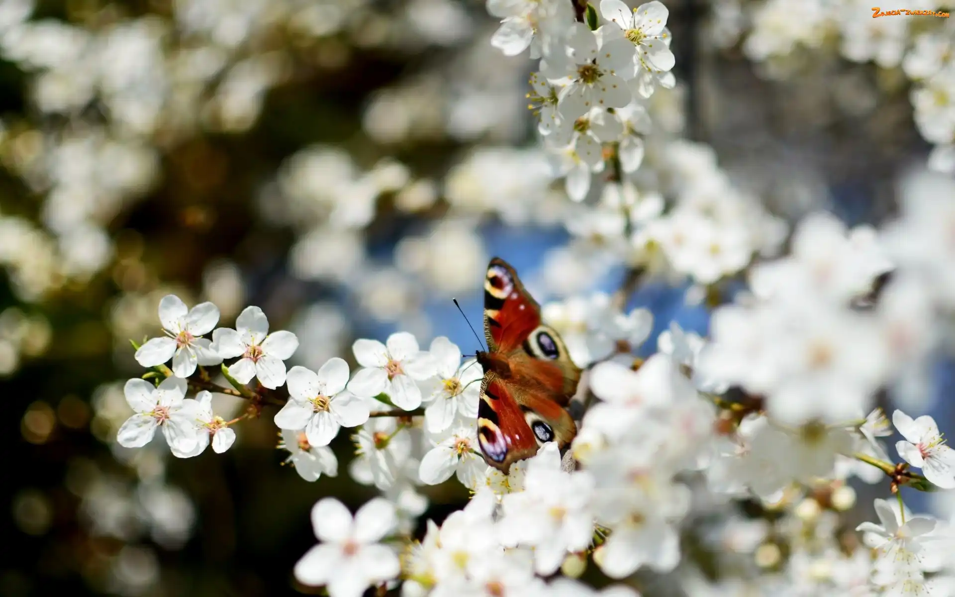 Zdjęcie: Motyl, Wiosna, Galazki, Kwitnace , Drzewa