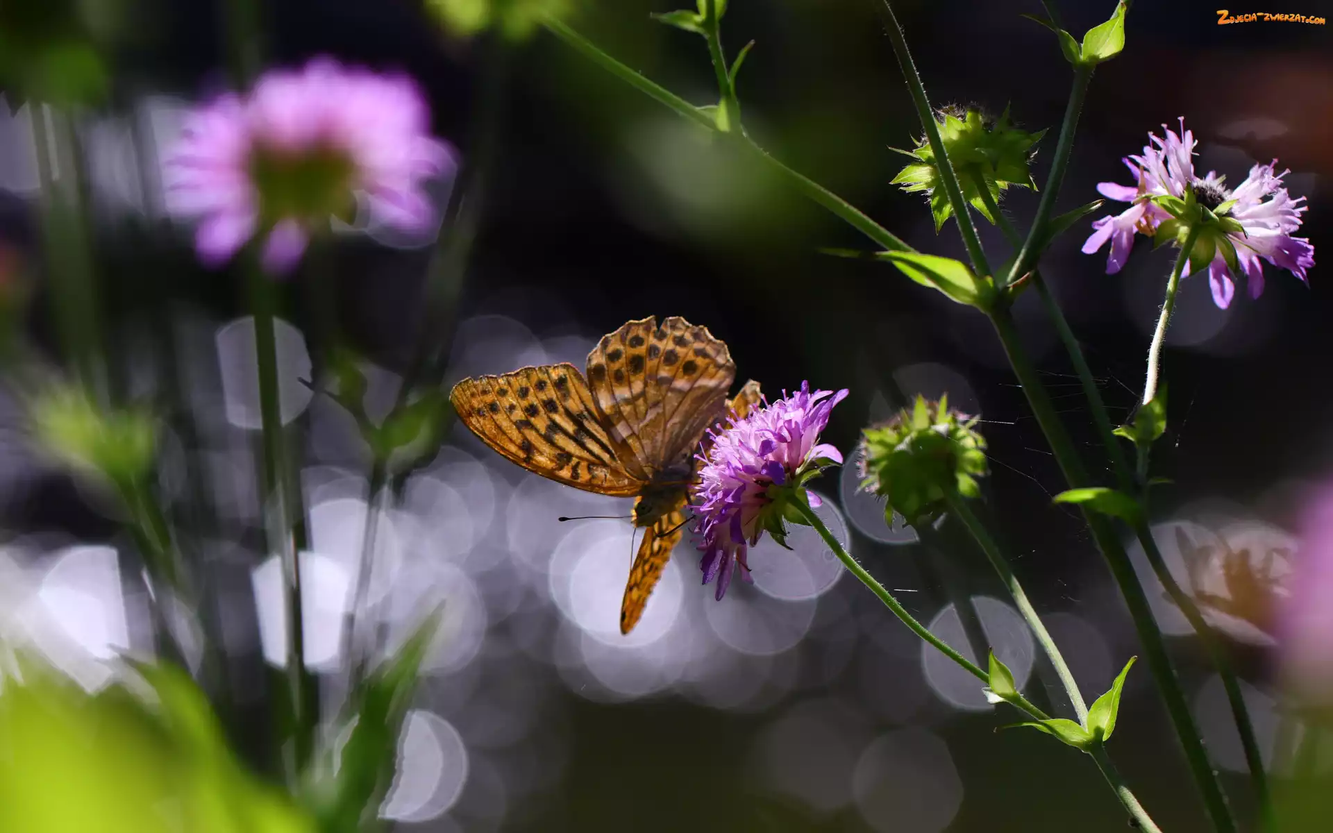 Zdjęcie: Lato, Kwiaty, Bokeh, Motyl