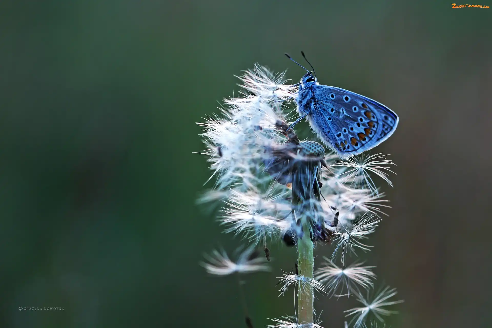 Zdjęcie: Motyl, Mniszek Pospolity, Modraszek, Dmuchawiec