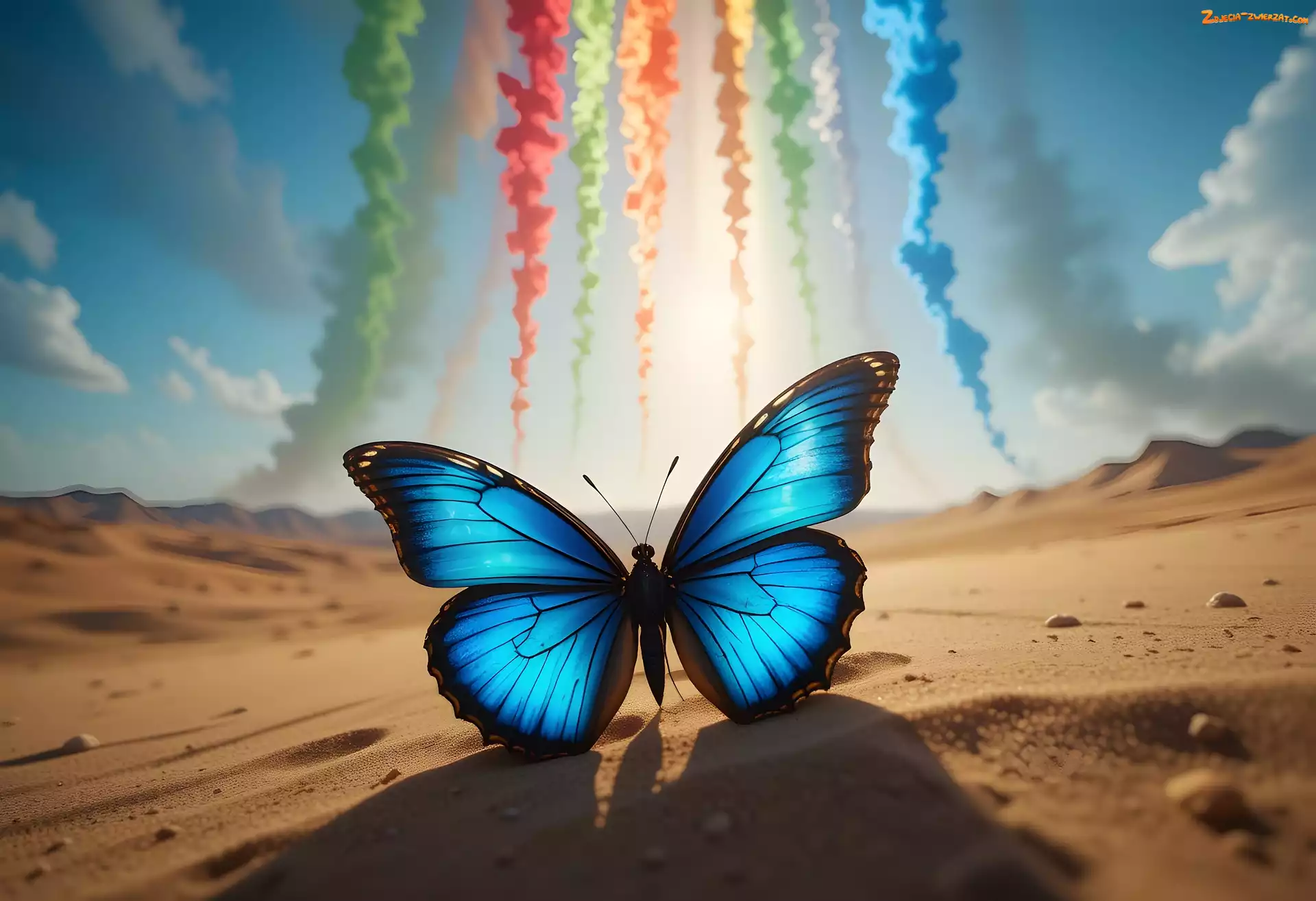 Zdjęcie: Grafika, Kolorowe, Niebieski, Motyl, Smugi, Niebo