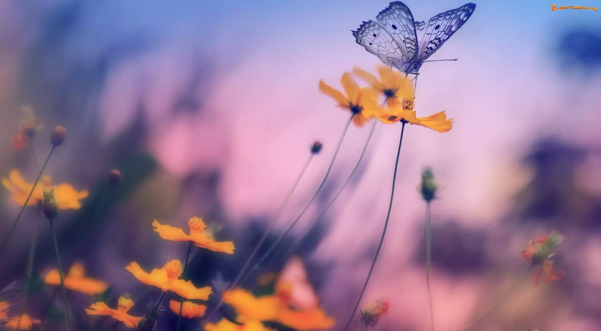 Rozmycie, Motyl, Kwiaty
