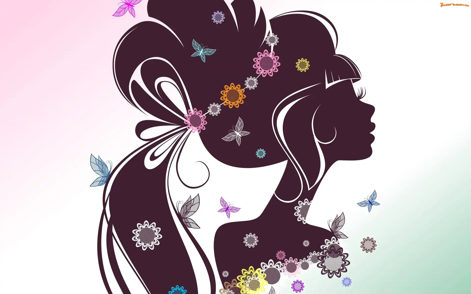Zdjęcie: Motyle, Grafika, Kobieta, Kwiaty