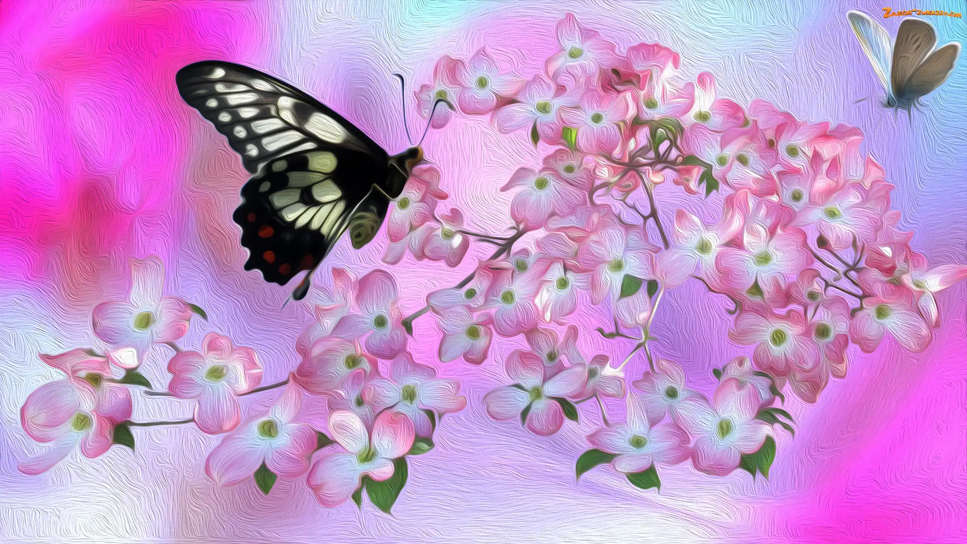 Zdjęcie: Motyle, Grafika, Kwiaty, Kolorowe tło