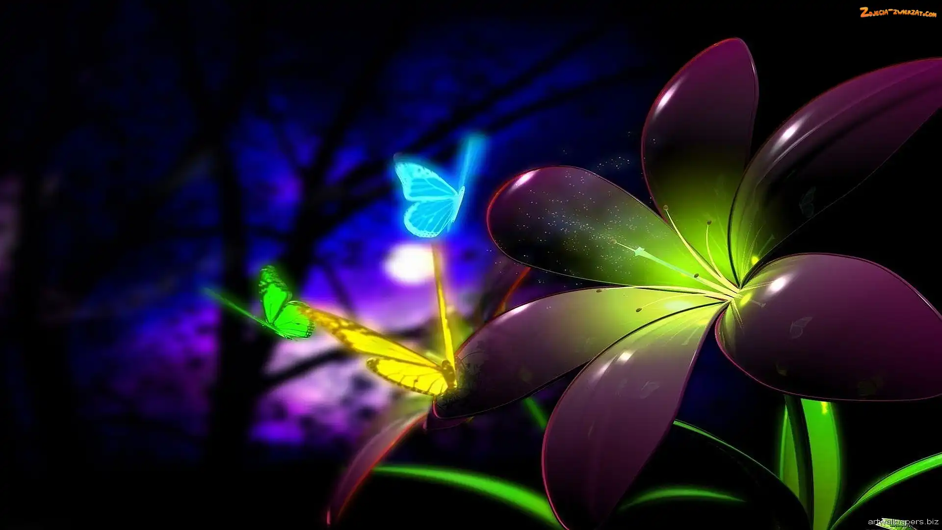 Zdjęcie: Motyle, 3D, Kwiat, Neon