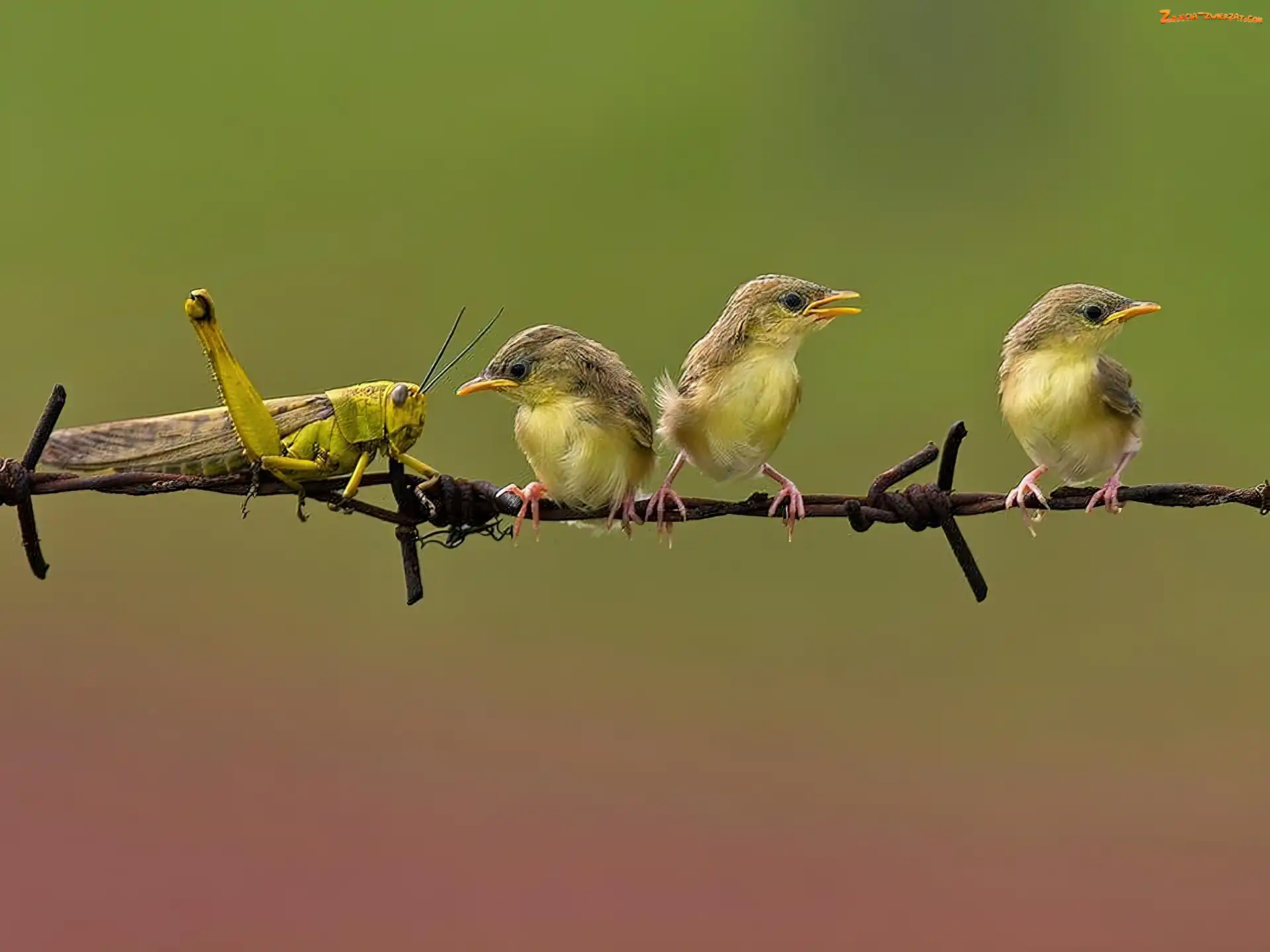 Zdjęcie: Muchołówki, Pisklęta, Owad, Pasikonik, Ptaki