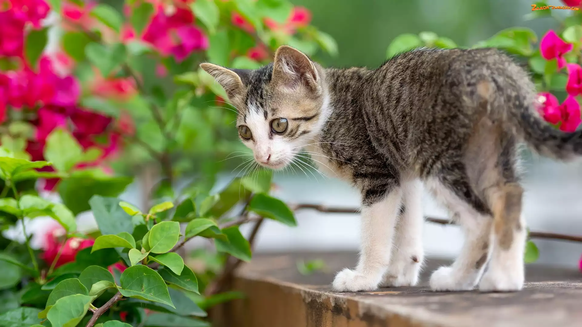 Zdjęcie: Murek, Kwiaty, Szaro-biały, Mały, Kotek