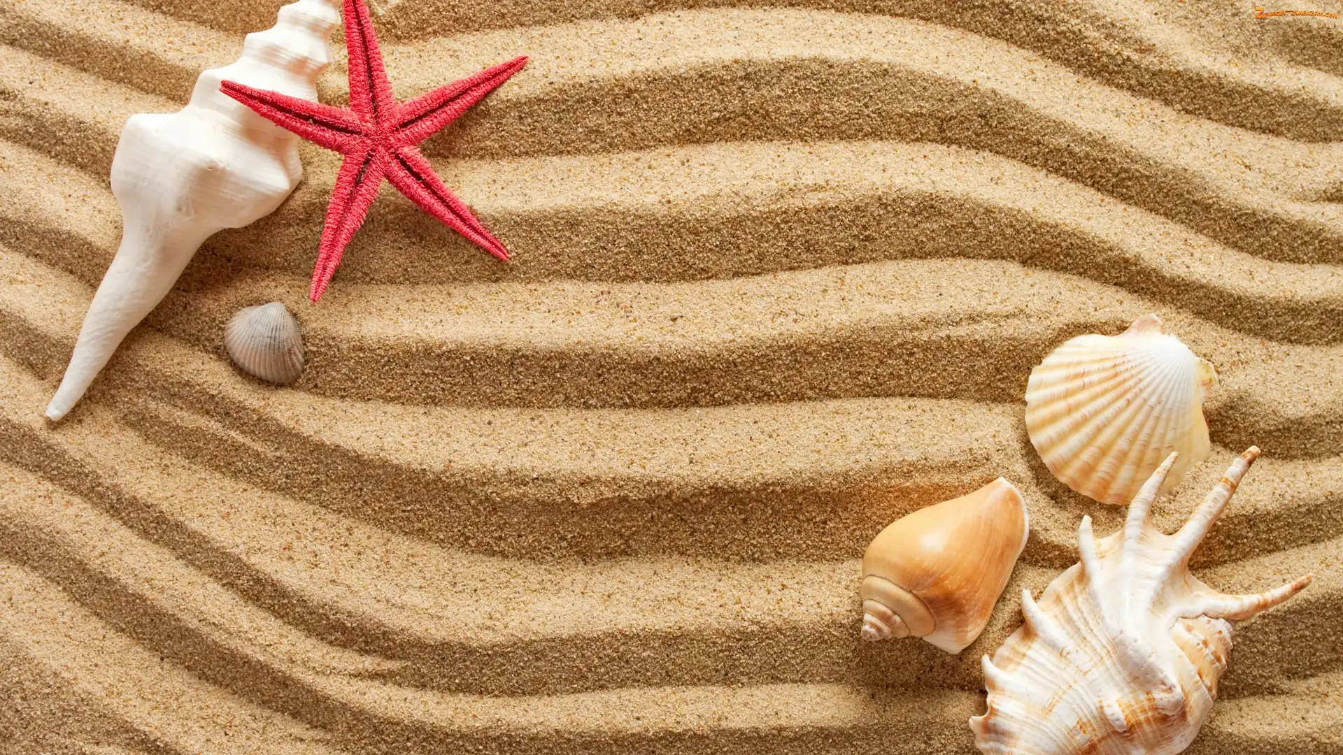 Muszelki, Rozgwiazda, Piasek, Czerwona