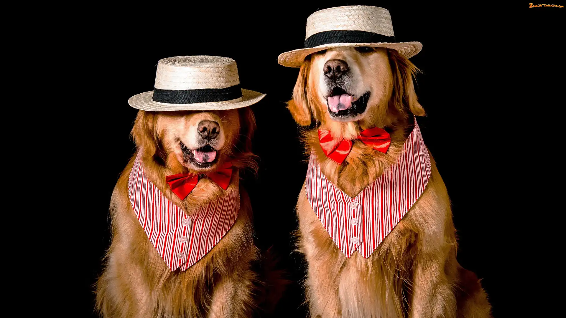 Muszki, Kapelusze, Psy, Dwa, Golden retriever