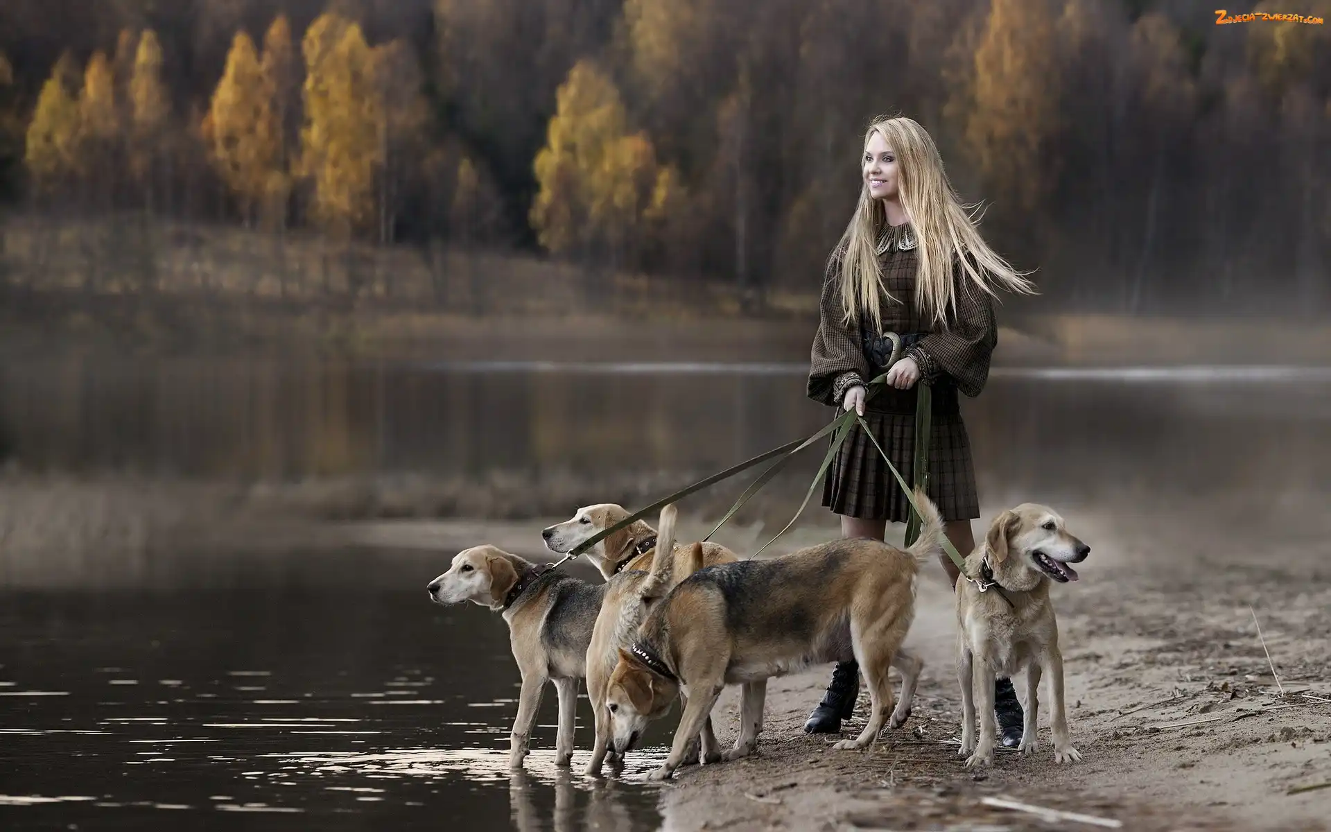 Zdjęcie: Myśliwskie, Woda, Psy, Kobieta
